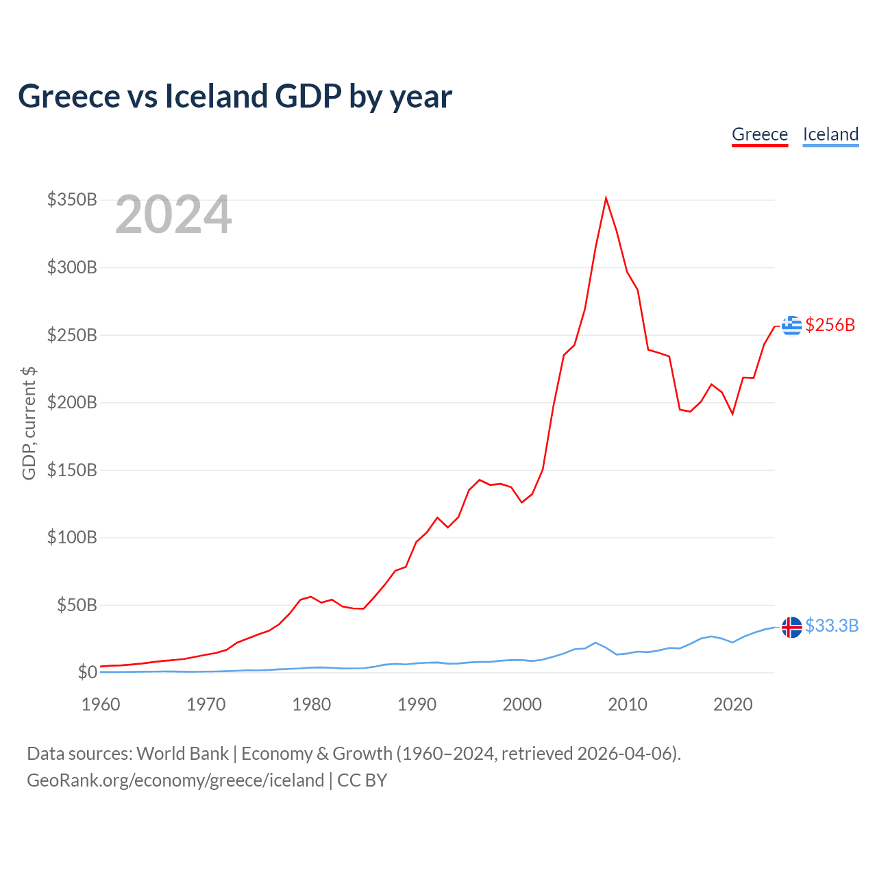 Greece vs Iceland GDP by year