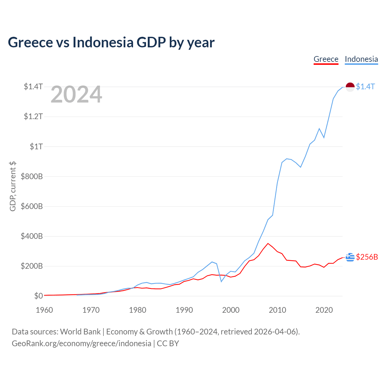 Greece vs Indonesia GDP by year