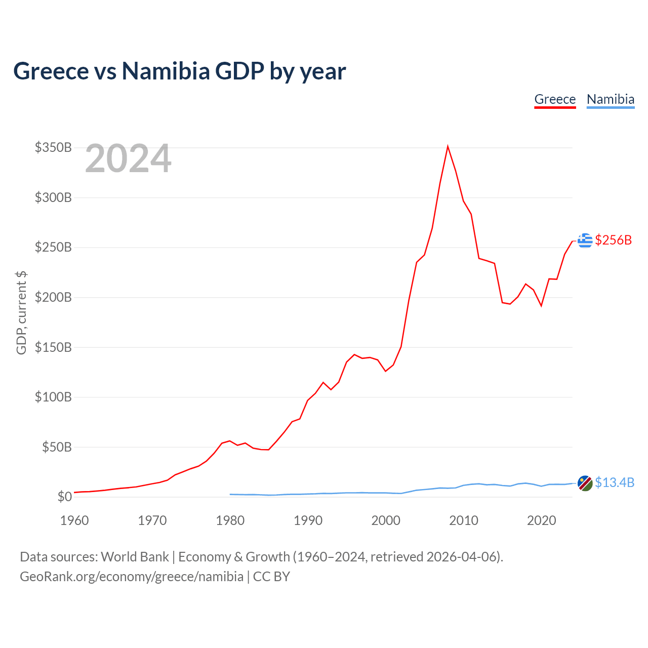 Greece vs Namibia GDP by year