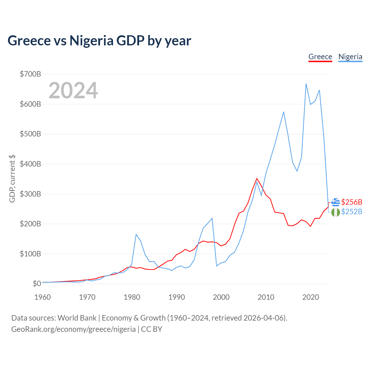 Greece vs Nigeria GDP by year