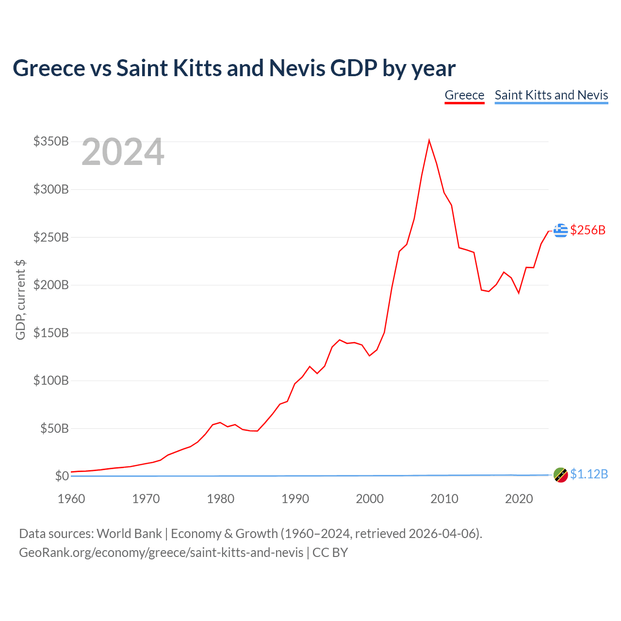 Greece vs Saint Kitts and Nevis GDP by year