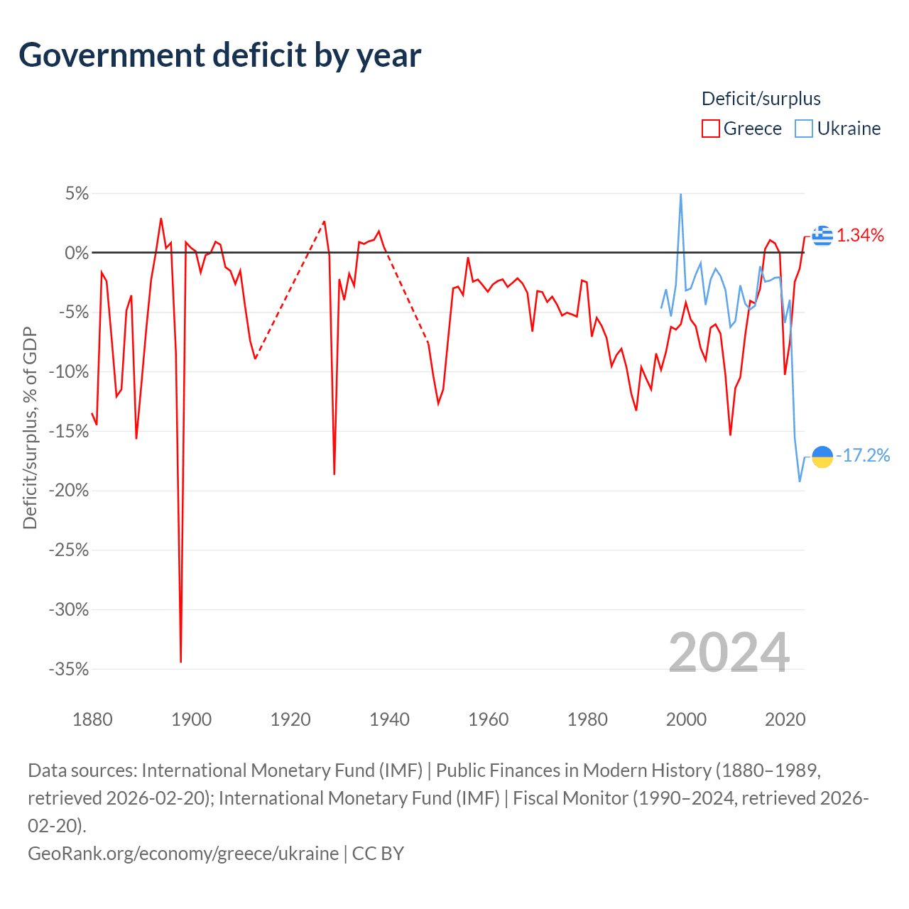 - International Monetary Fund (IMF) | Public Finances in Modern History (1880–1996, retrieved 2026-02-20)