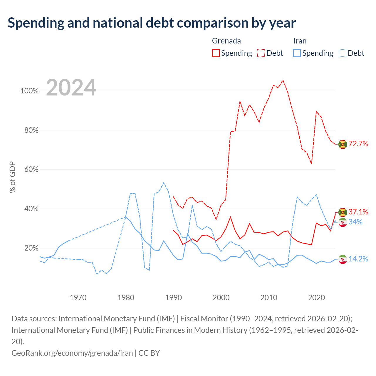 Grenada has $997M in government debt (72.7% of GDP), compared to $162B (34% of GDP) in Iran.