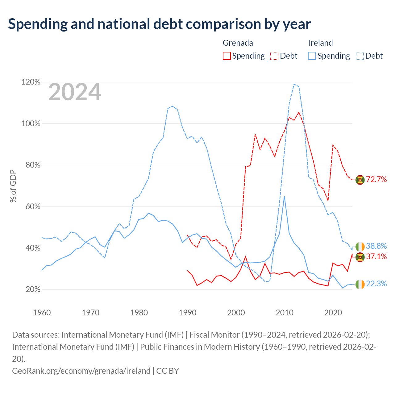Grenada has $997M in government debt (72.7% of GDP), compared to $236B (38.8% of GDP) in Ireland.