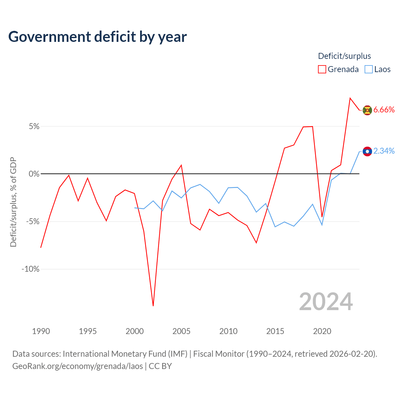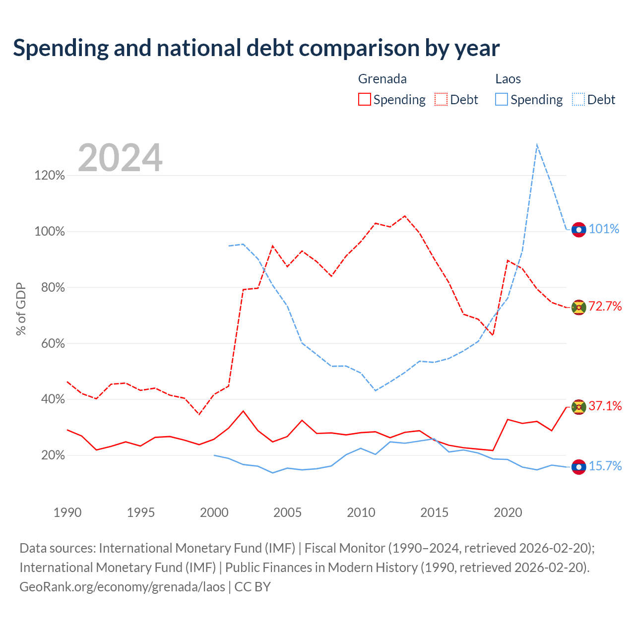 Grenada has $997M in government debt (72.7% of GDP), compared to $16.6B (100.5% of GDP) in Laos.
