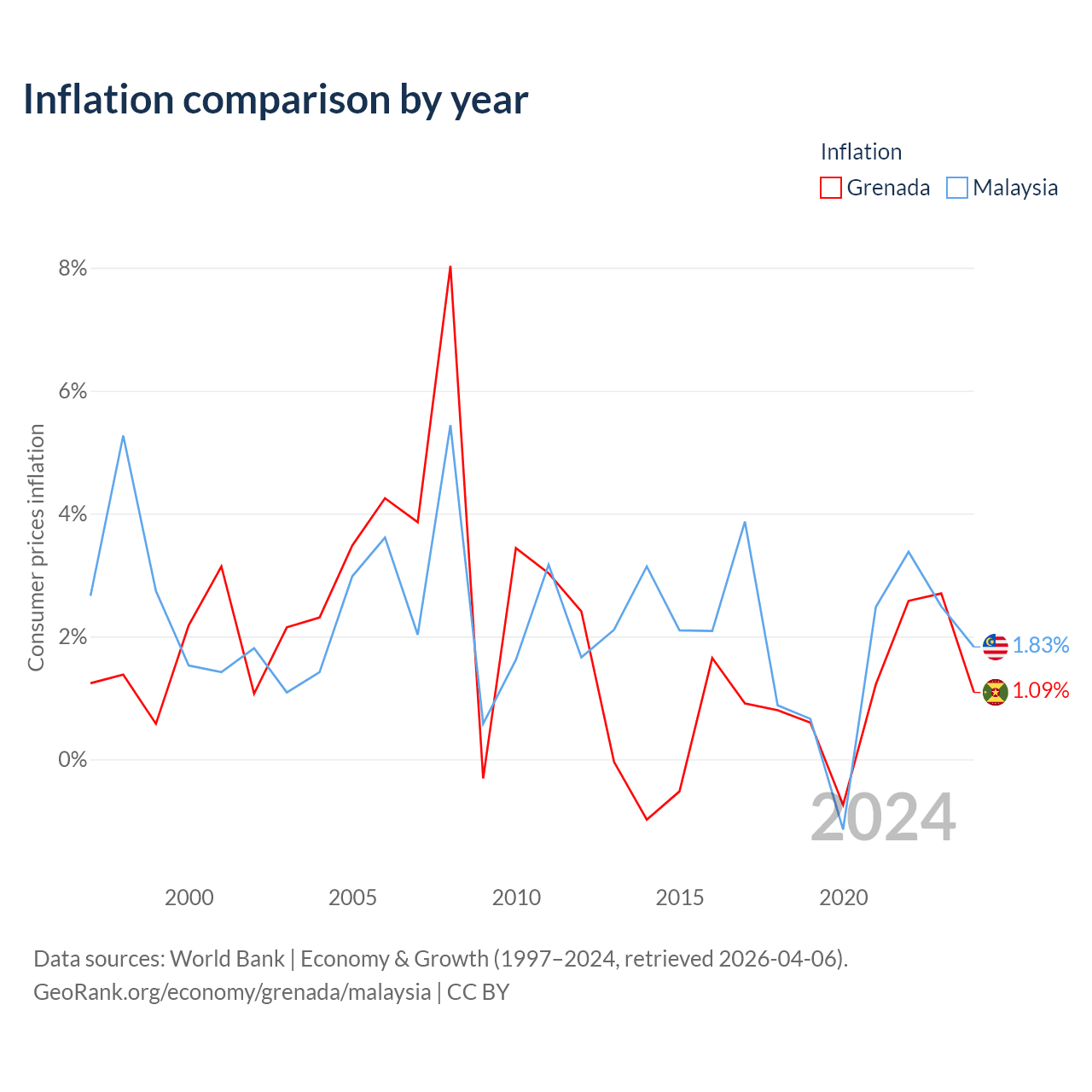 Data sources: World Bank | Economy & Growth (1960–2024, retrieved 2026-04-06).