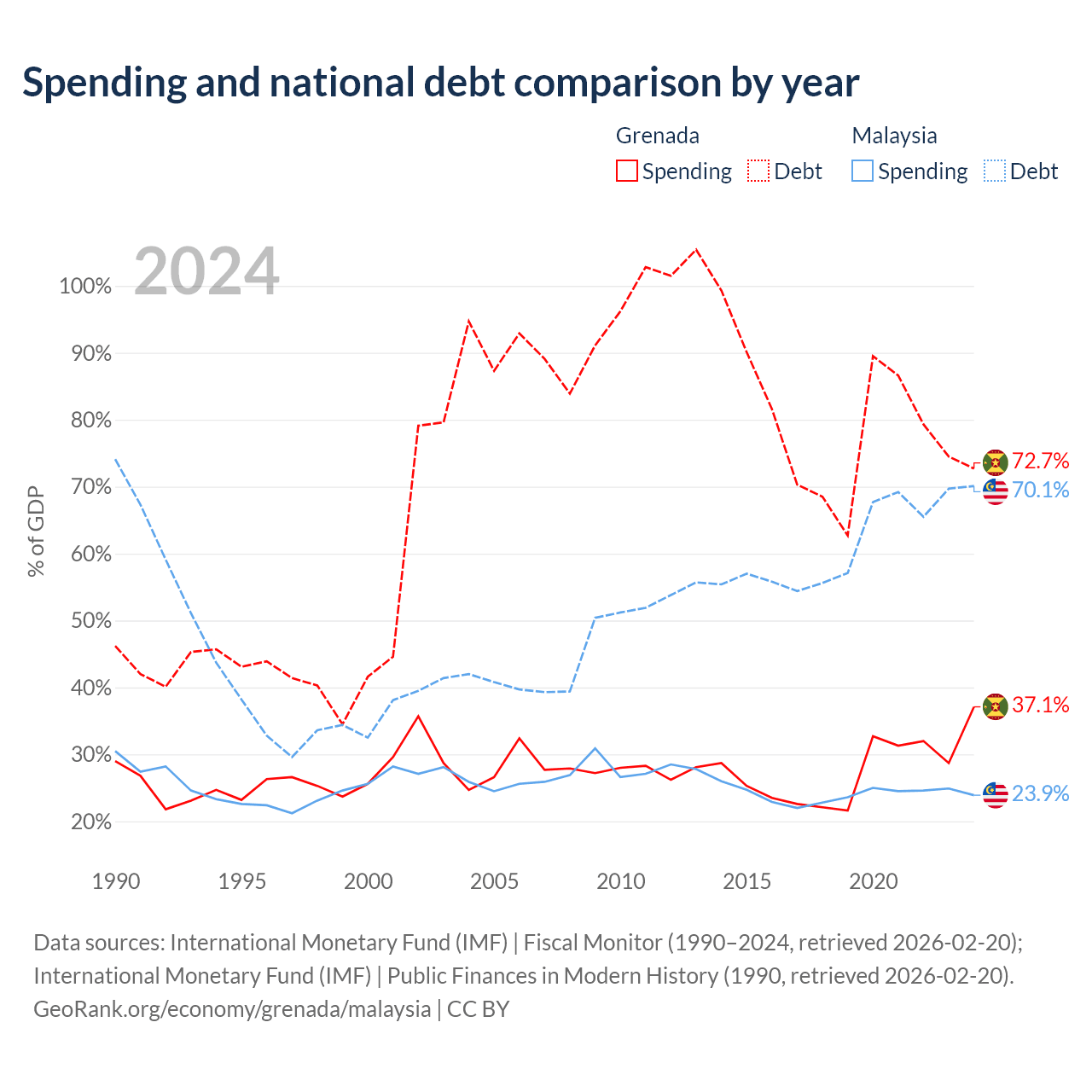 - International Monetary Fund (IMF) | Fiscal Monitor (1990–2024, retrieved 2026-02-20)