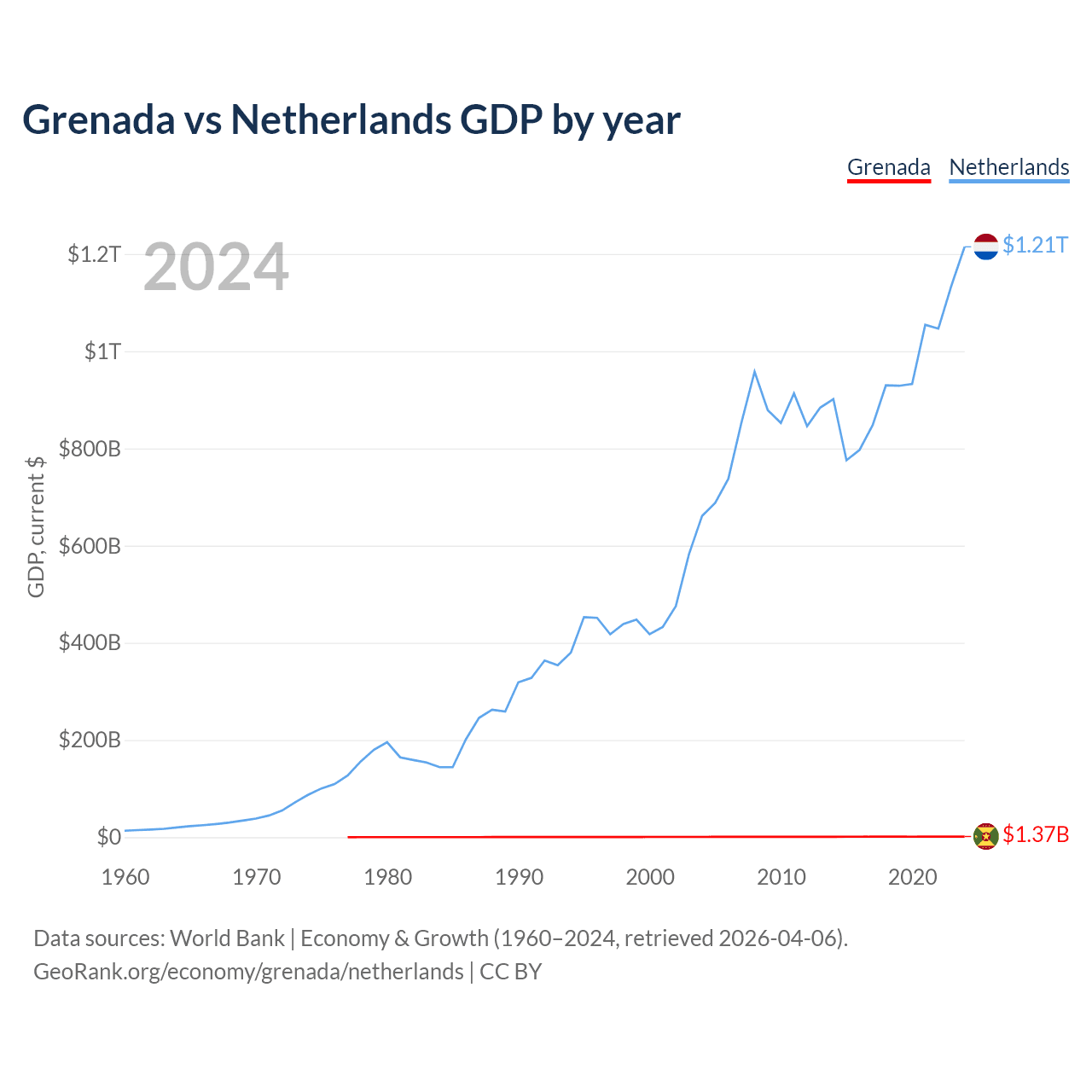Grenada vs Netherlands GDP by year