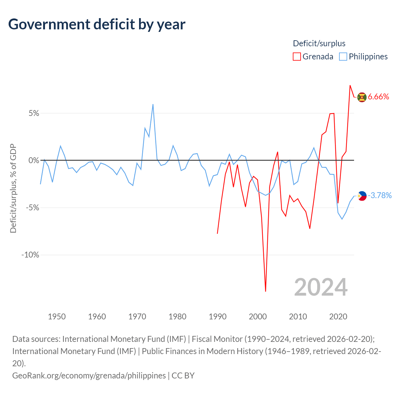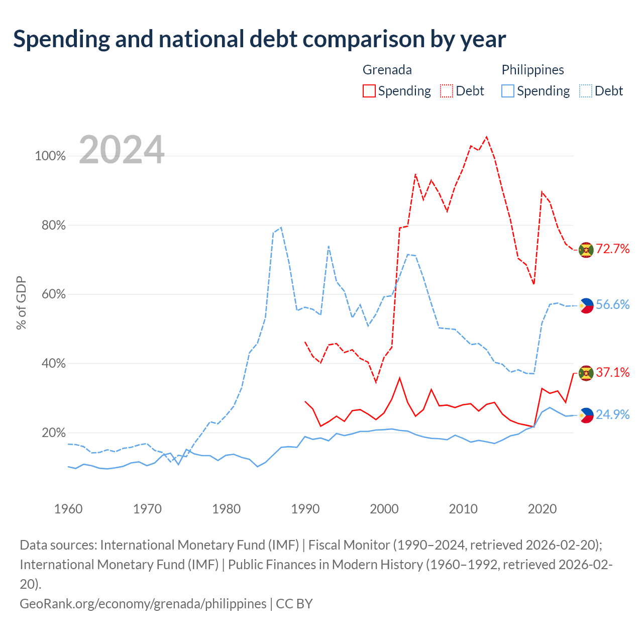 Grenada has $997M in government debt (72.7% of GDP), compared to $261B (56.6% of GDP) in the Philippines.
