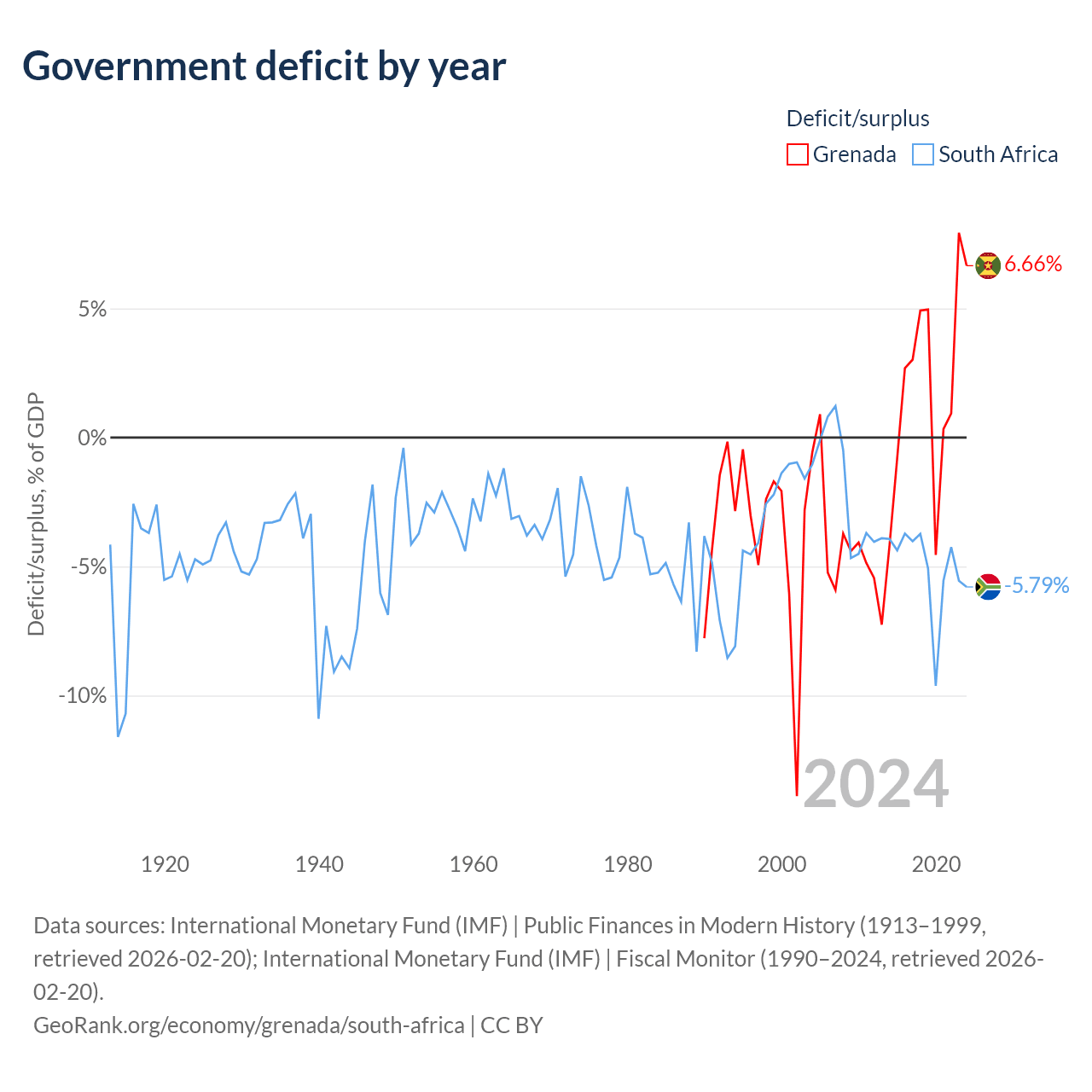 Grenada has $997M in government debt (72.7% of GDP), compared to $305B (76% of GDP) in South Africa.
