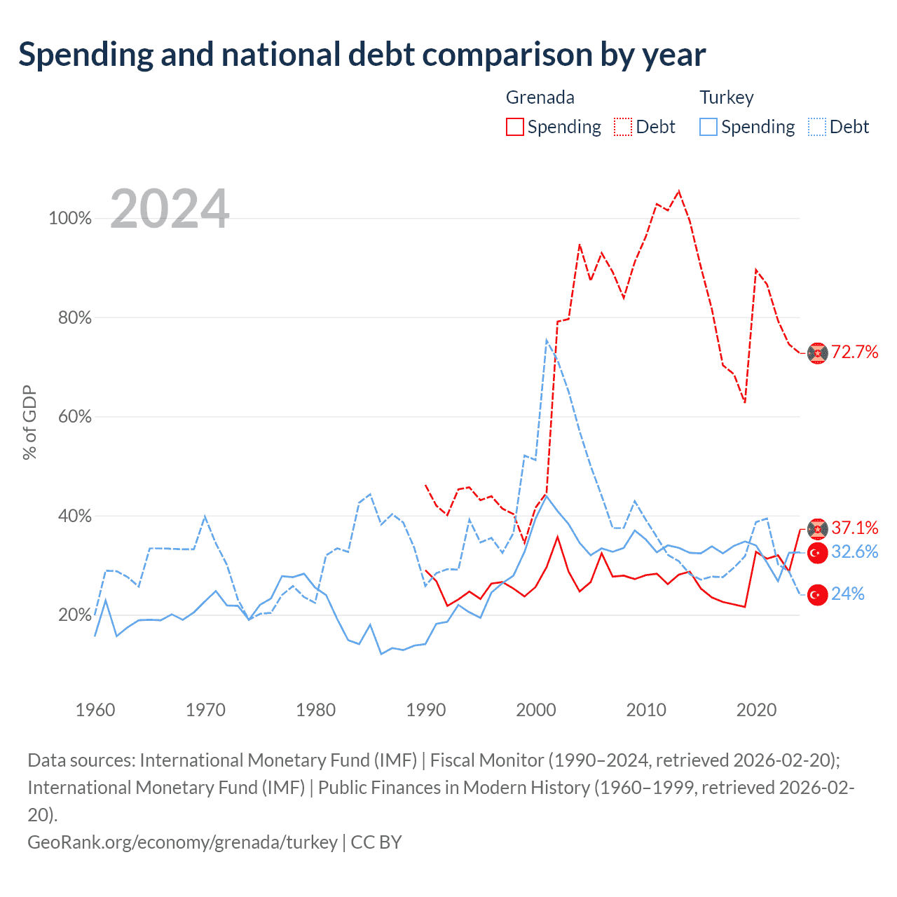 Grenada has $997M in government debt (72.7% of GDP), compared to $327B (24% of GDP) in Turkey.
