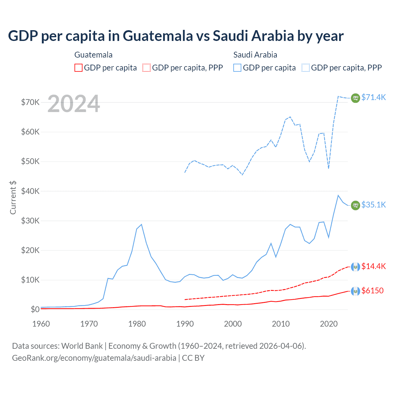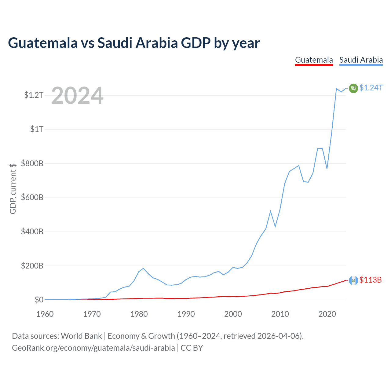 Guatemala vs Saudi Arabia GDP by year
