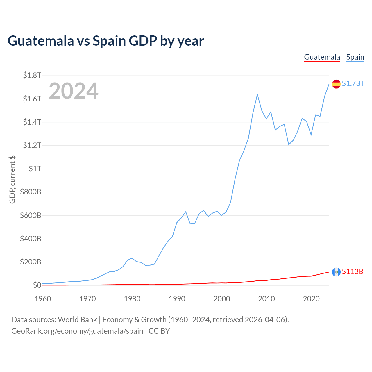 Guatemala vs Spain GDP by year