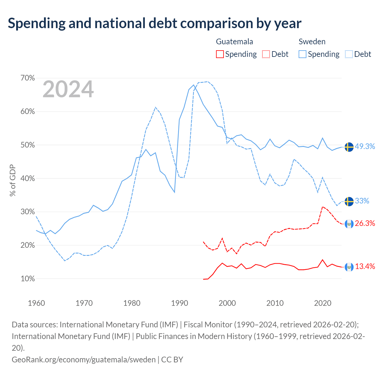 Guatemala has $29.8B in government debt (26.3% of GDP), compared to $199B (33% of GDP) in Sweden.