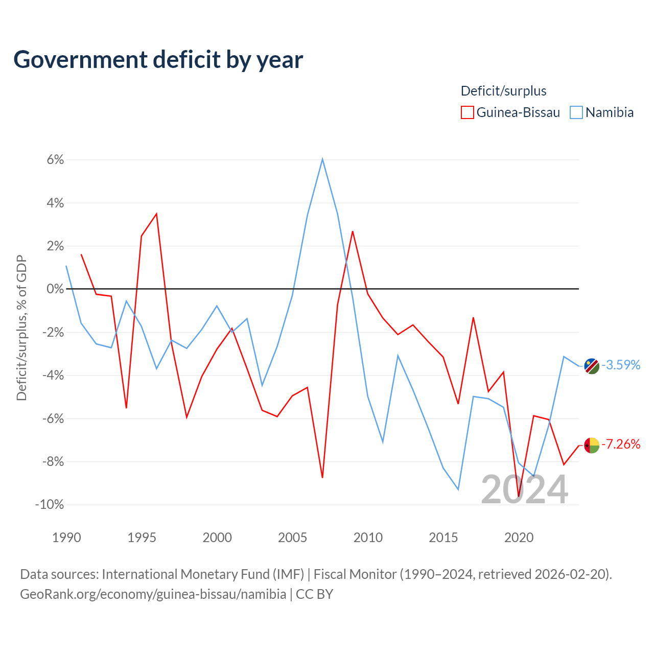 - International Monetary Fund (IMF) | Fiscal Monitor (1990–2024, retrieved 2026-02-20)