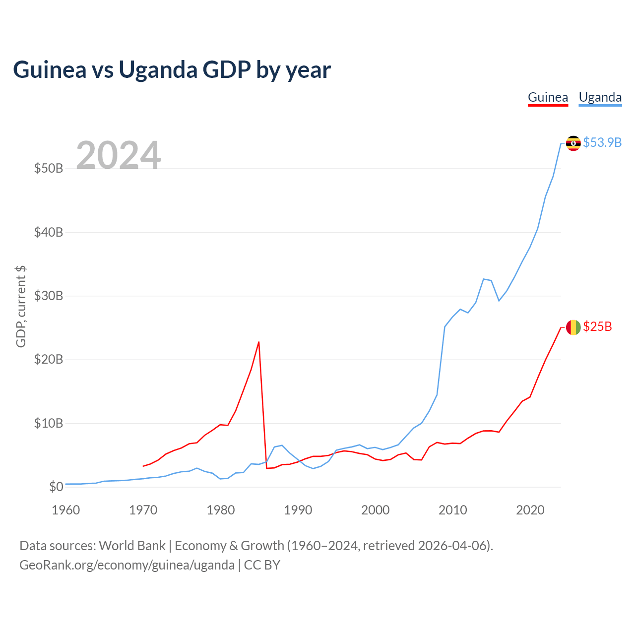 Guinea vs Uganda GDP by year