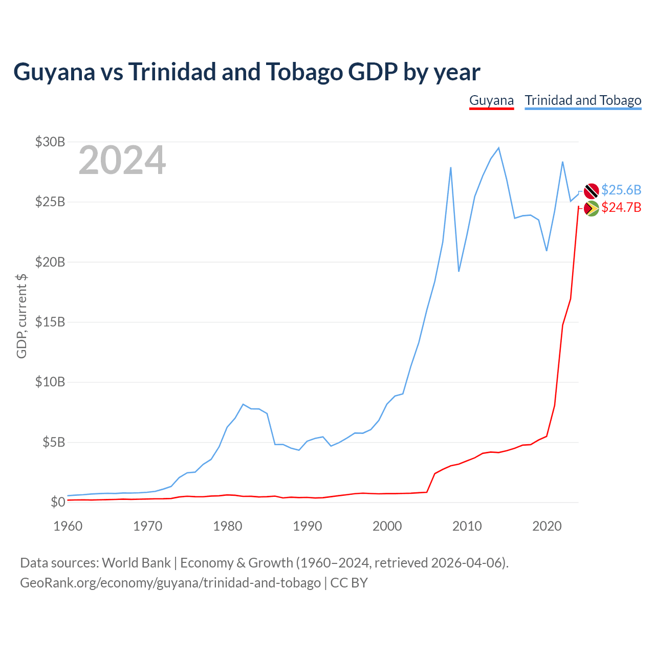 Guyana vs Trinidad and Tobago GDP by year
