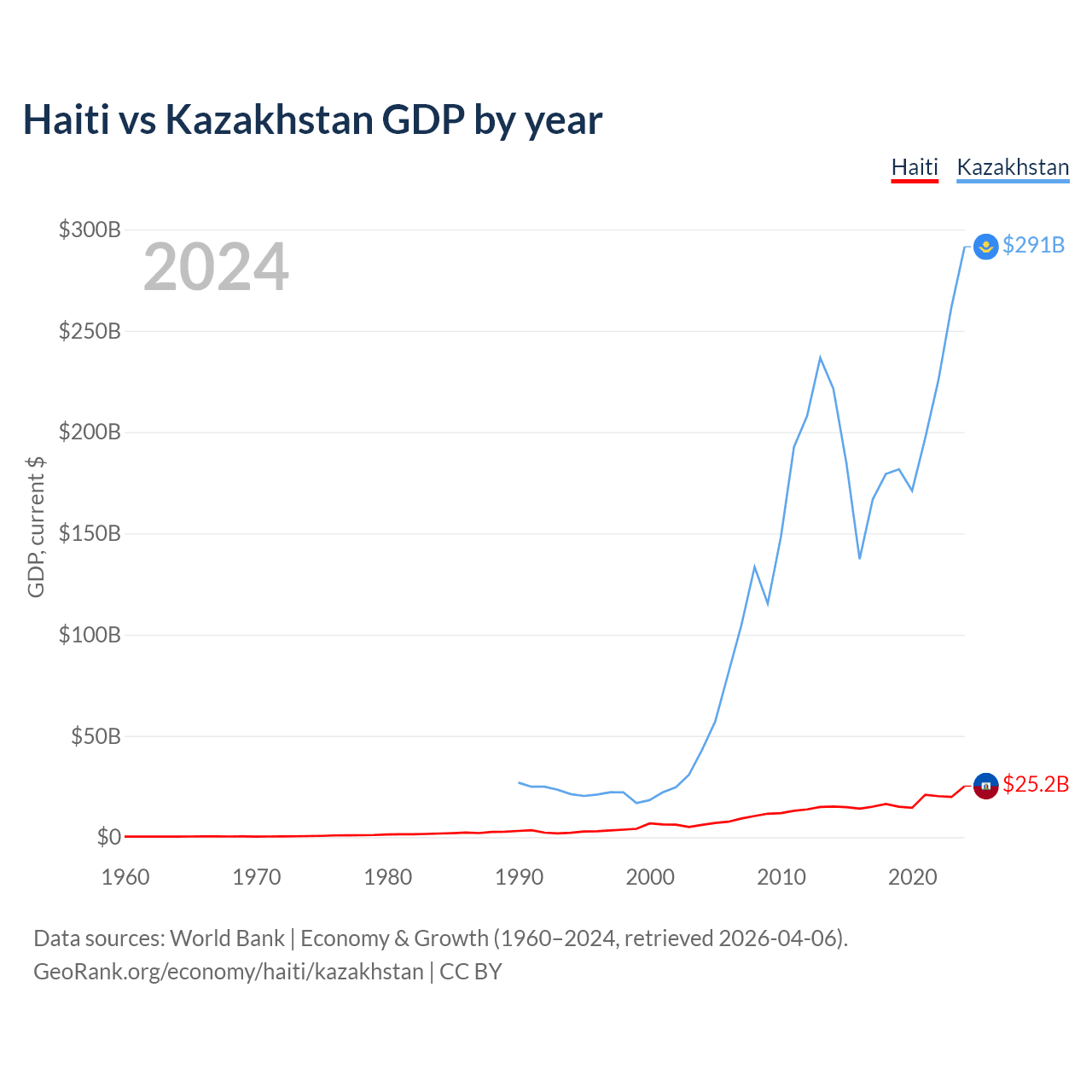Haiti vs Kazakhstan GDP by year