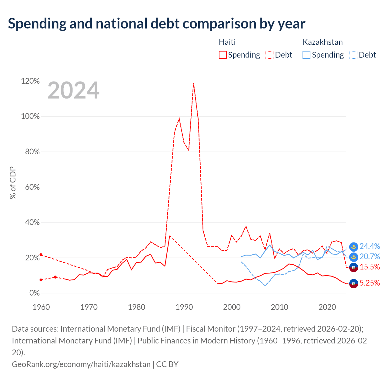Haiti has $3.91B in government debt (15.5% of GDP), compared to $71.1B (24.4% of GDP) in Kazakhstan.