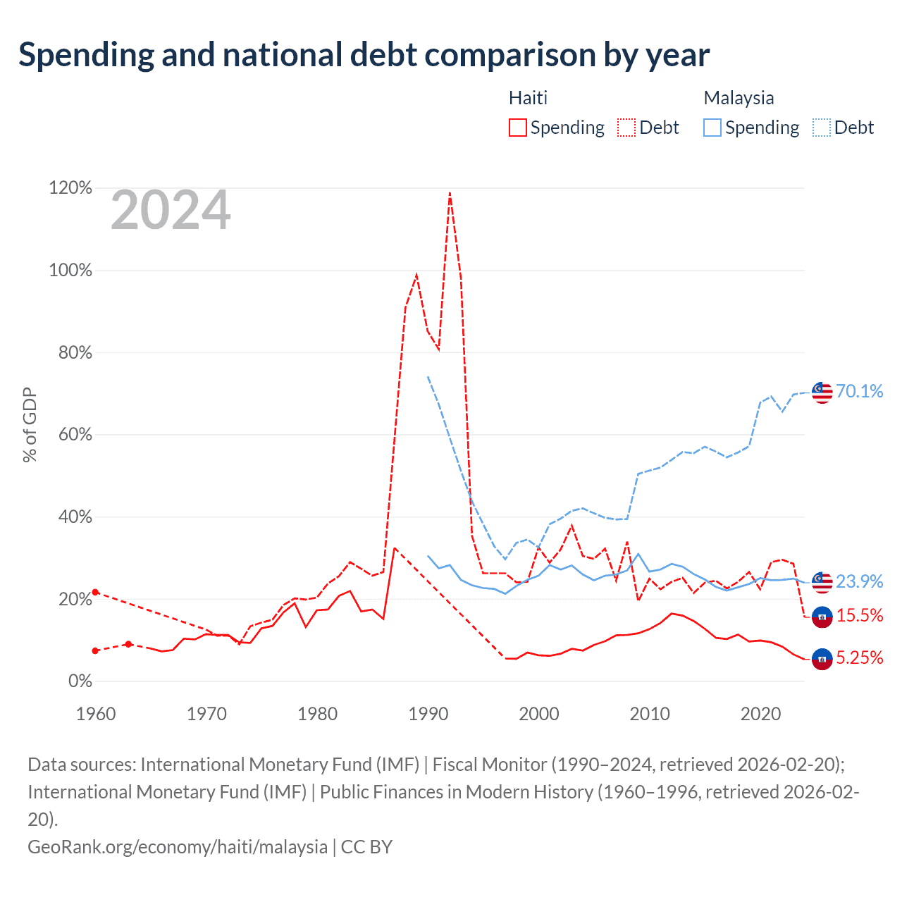 Haiti has $3.77B in government debt (10.3% of GDP), compared to $297B (69.8% of GDP) in Malaysia.