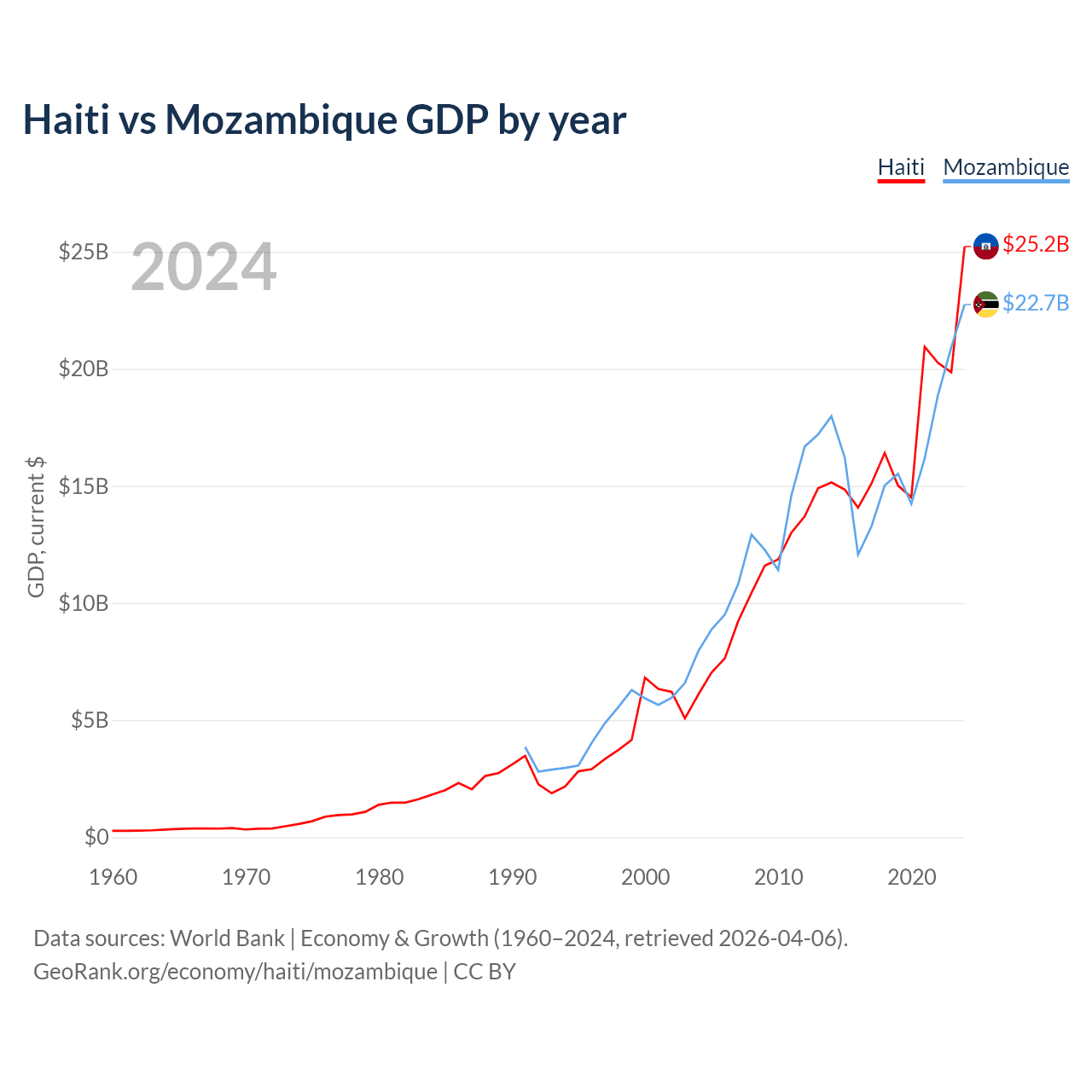 Haiti vs Mozambique GDP by year