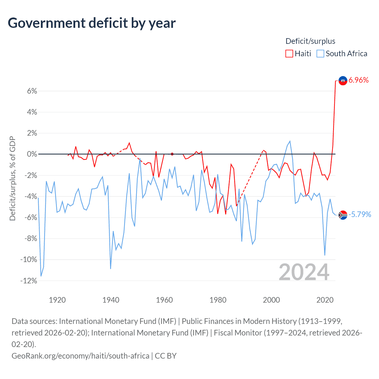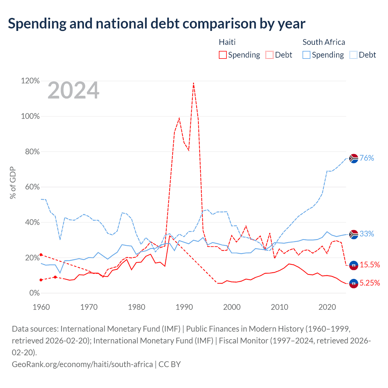 Haiti has $3.91B in government debt (15.5% of GDP), compared to $305B (76% of GDP) in South Africa.