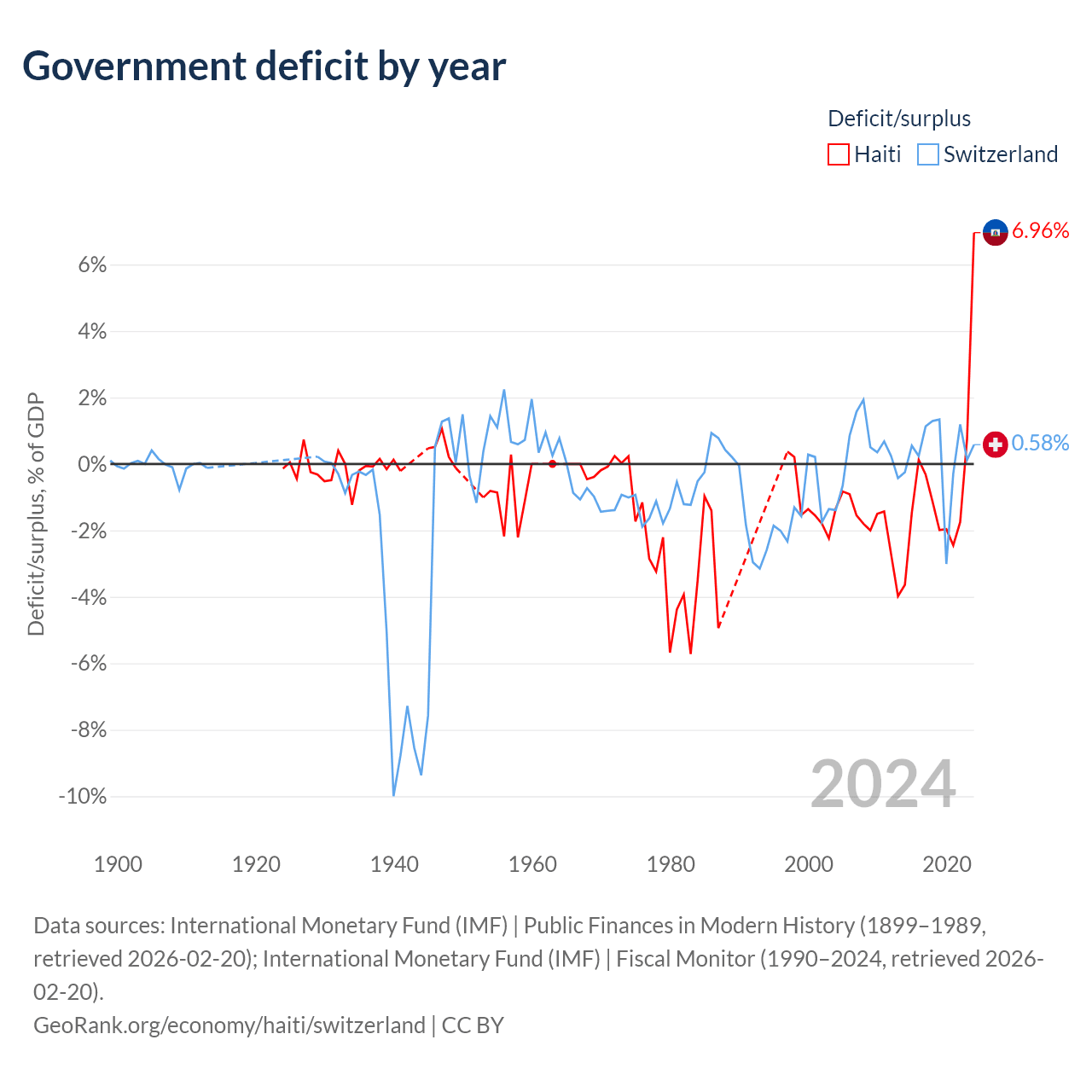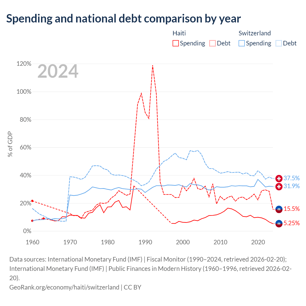 Haiti has $3.91B in government debt (15.5% of GDP), compared to $351B (37.5% of GDP) in Switzerland.