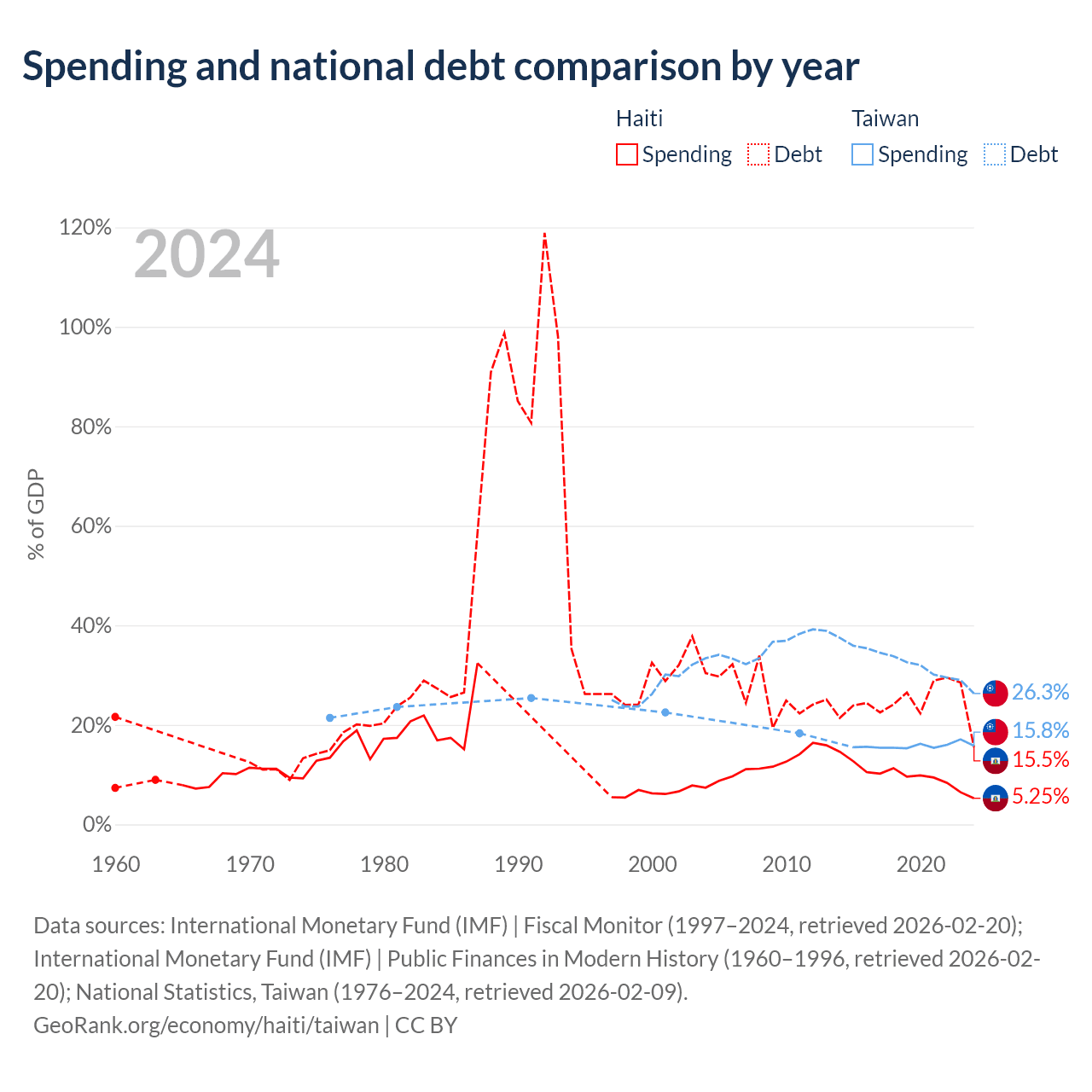 Haiti has $3.91B in government debt (15.5% of GDP), compared to $211B (26.3% of GDP) in Taiwan.