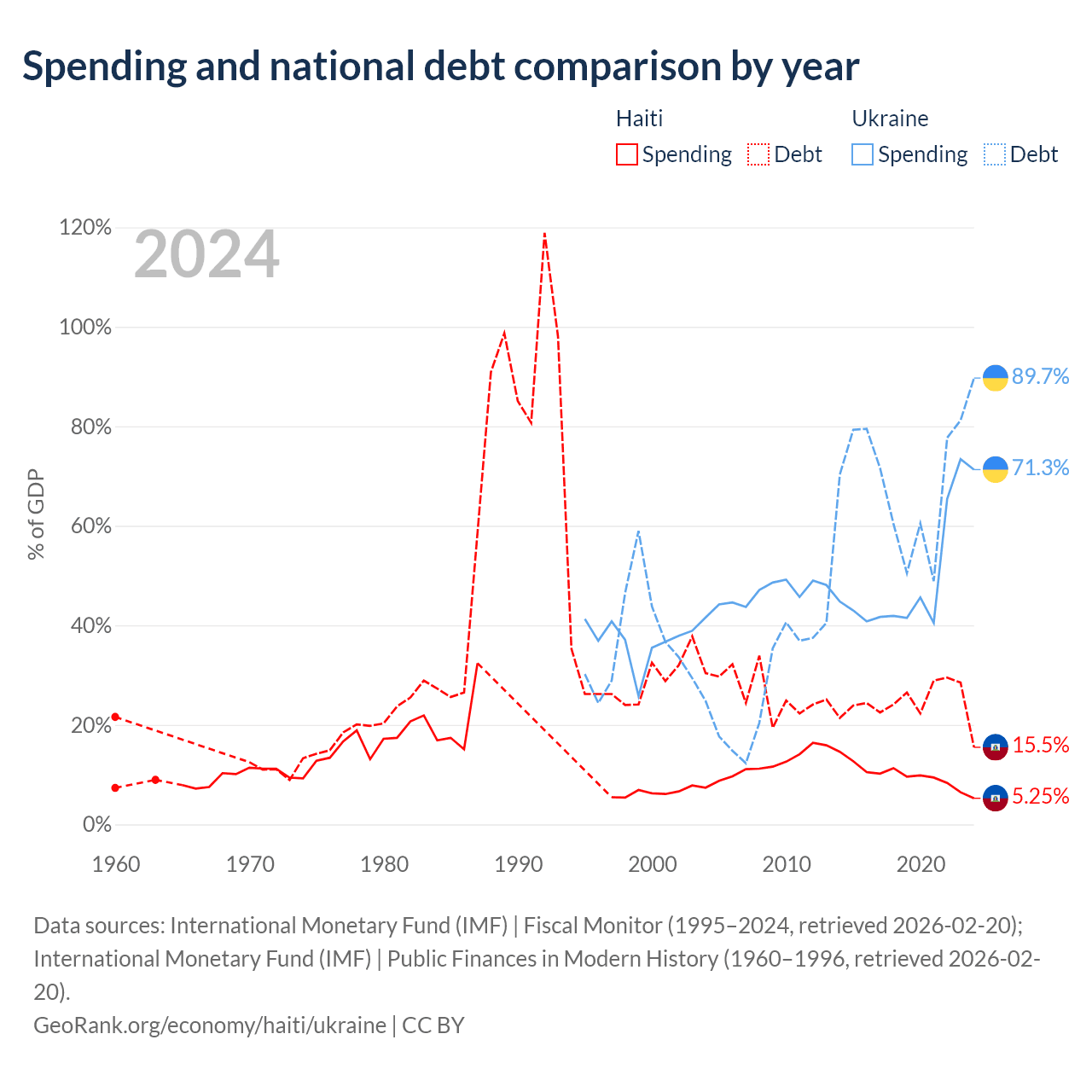 Haiti has $3.91B in government debt (15.5% of GDP), compared to $171B (89.7% of GDP) in Ukraine.