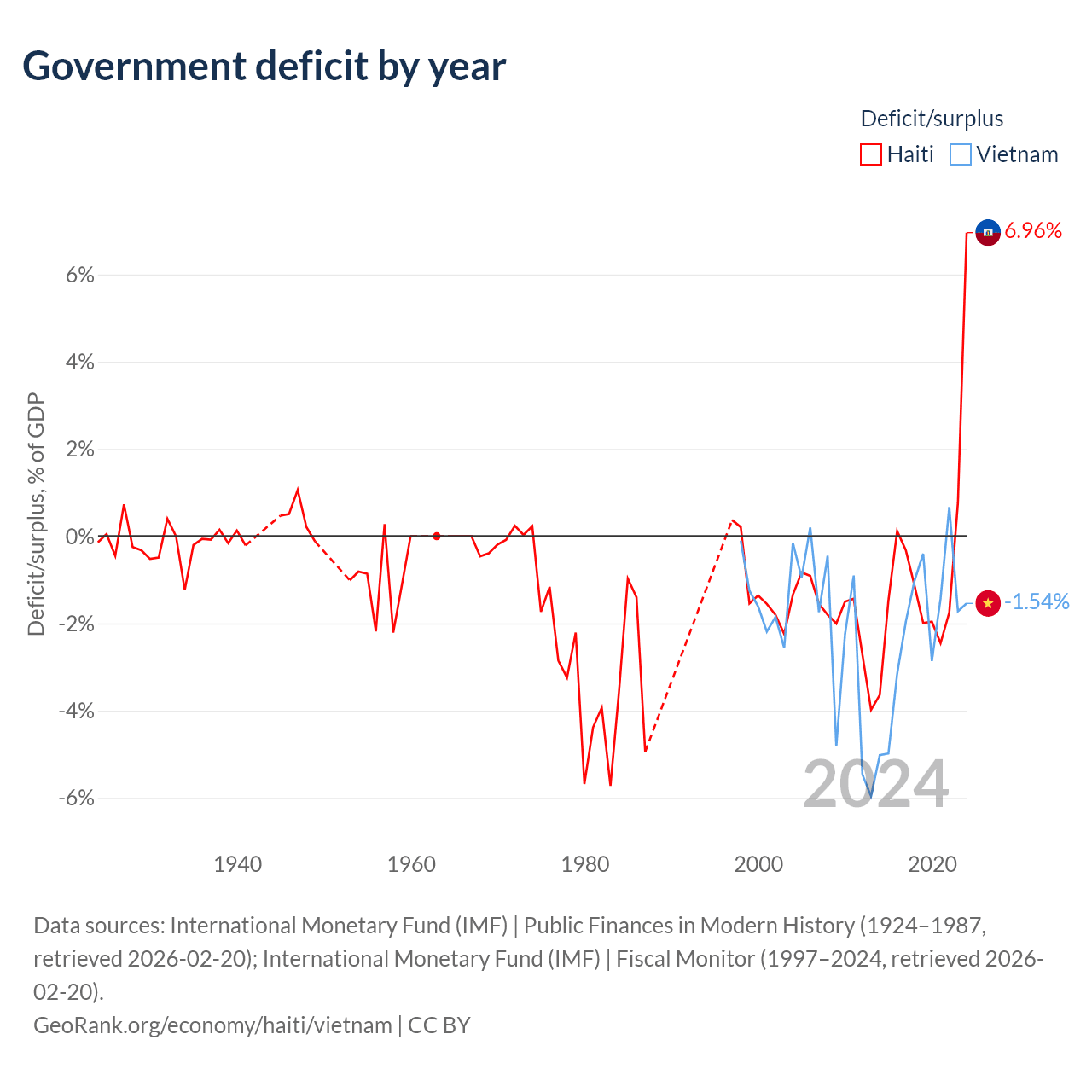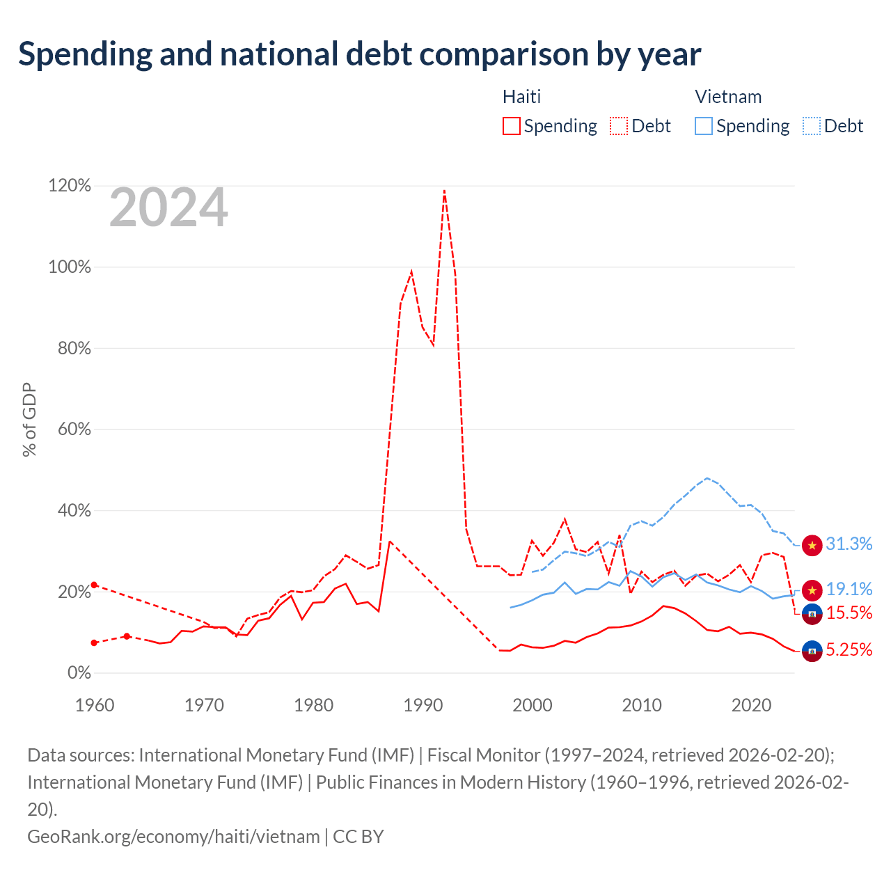 Haiti has $3.91B in government debt (15.5% of GDP), compared to $149B (31.3% of GDP) in Vietnam.