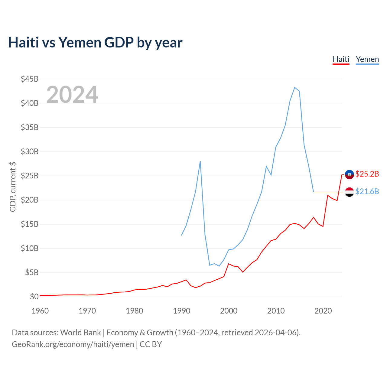 Haiti vs Yemen GDP by year