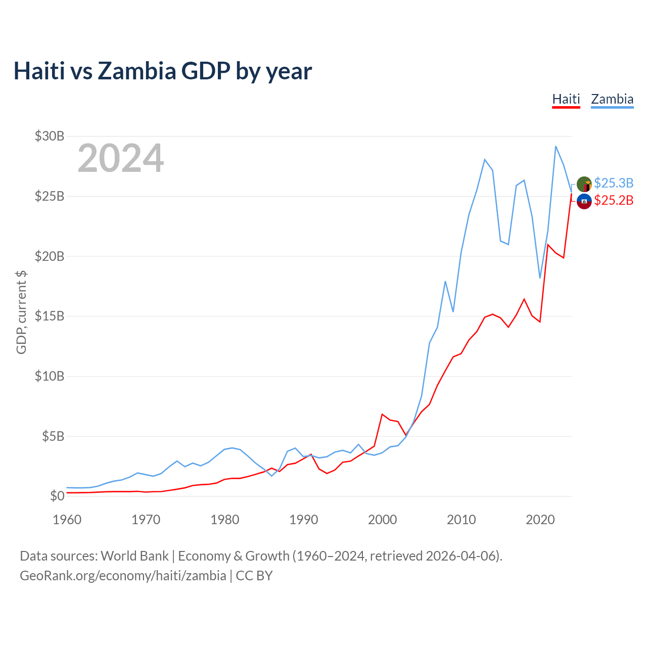 Haiti vs Zambia GDP by year