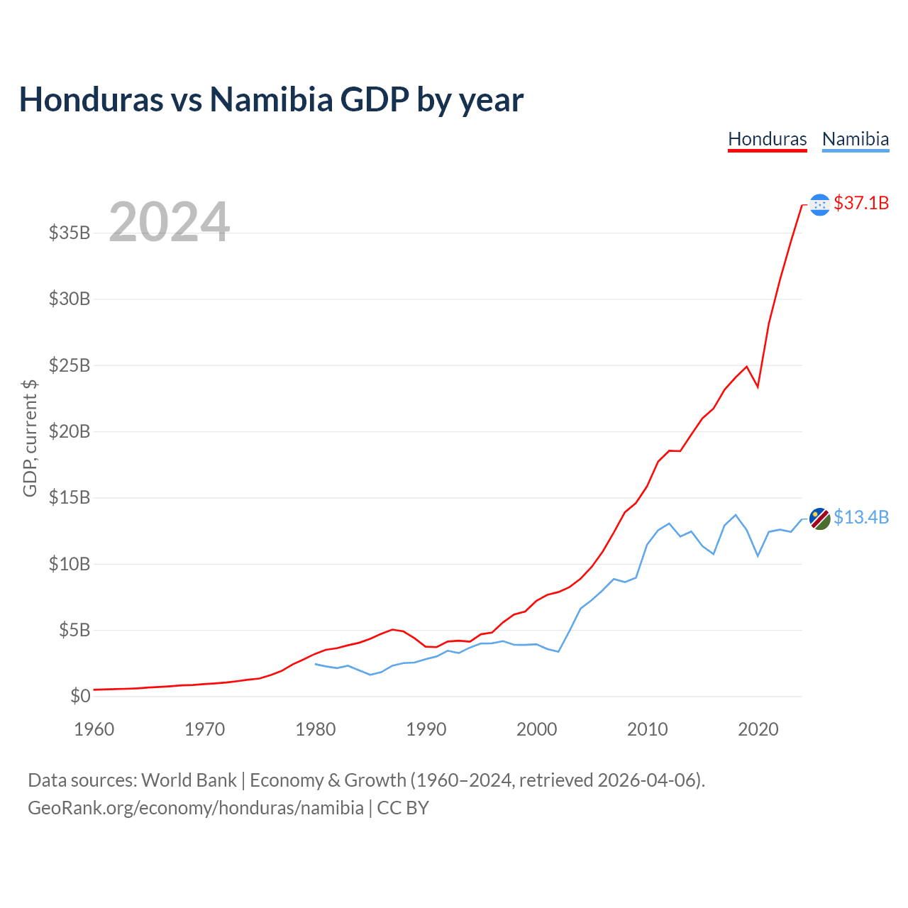 Honduras vs Namibia GDP by year