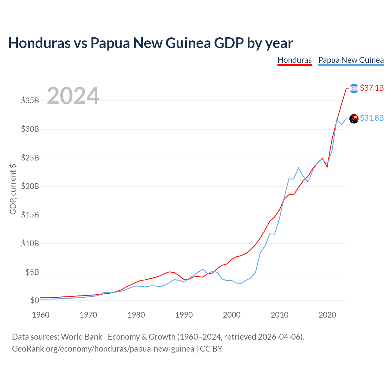 Honduras vs Papua New Guinea GDP by year