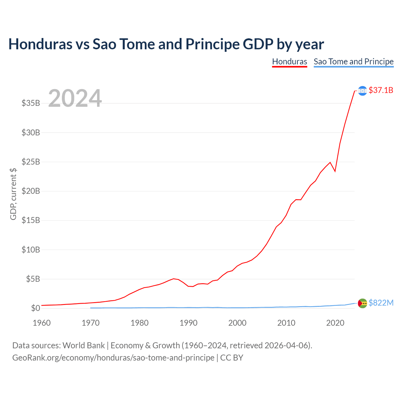 Honduras vs Sao Tome and Principe GDP by year