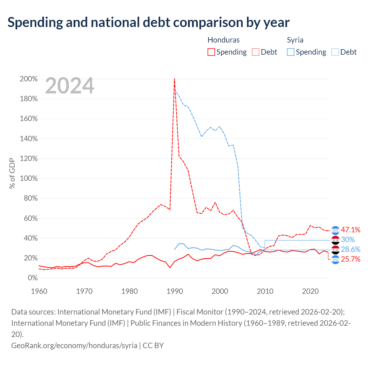 Honduras has $17.5B in government debt (47.1% of GDP), compared to $18.4B (30% of GDP) in Syria.