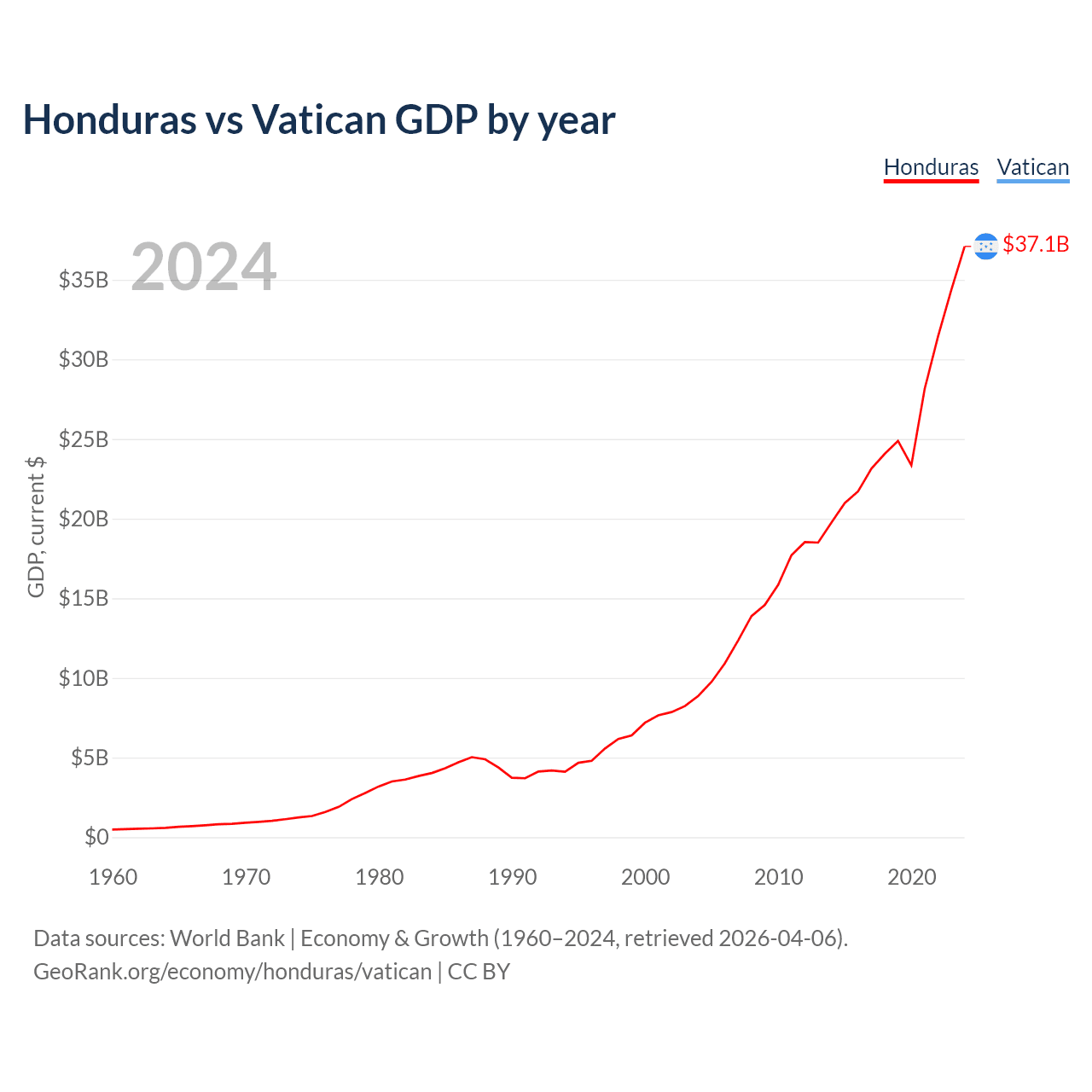 Honduras vs Vatican GDP by year