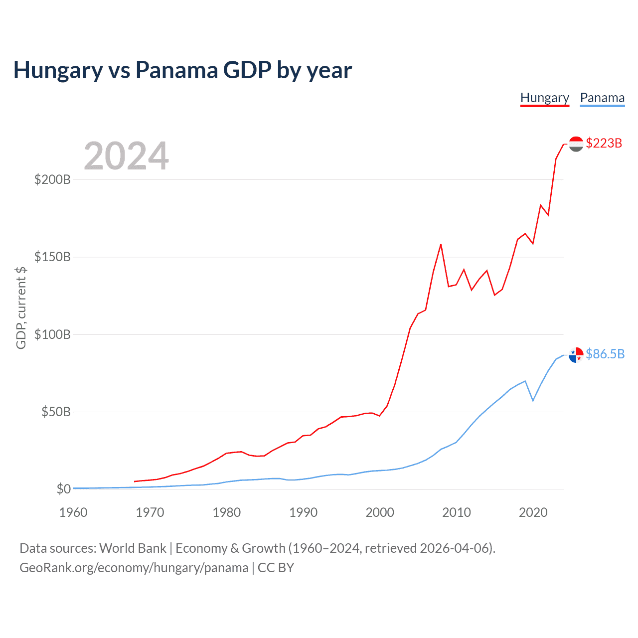 Hungary vs Panama GDP by year