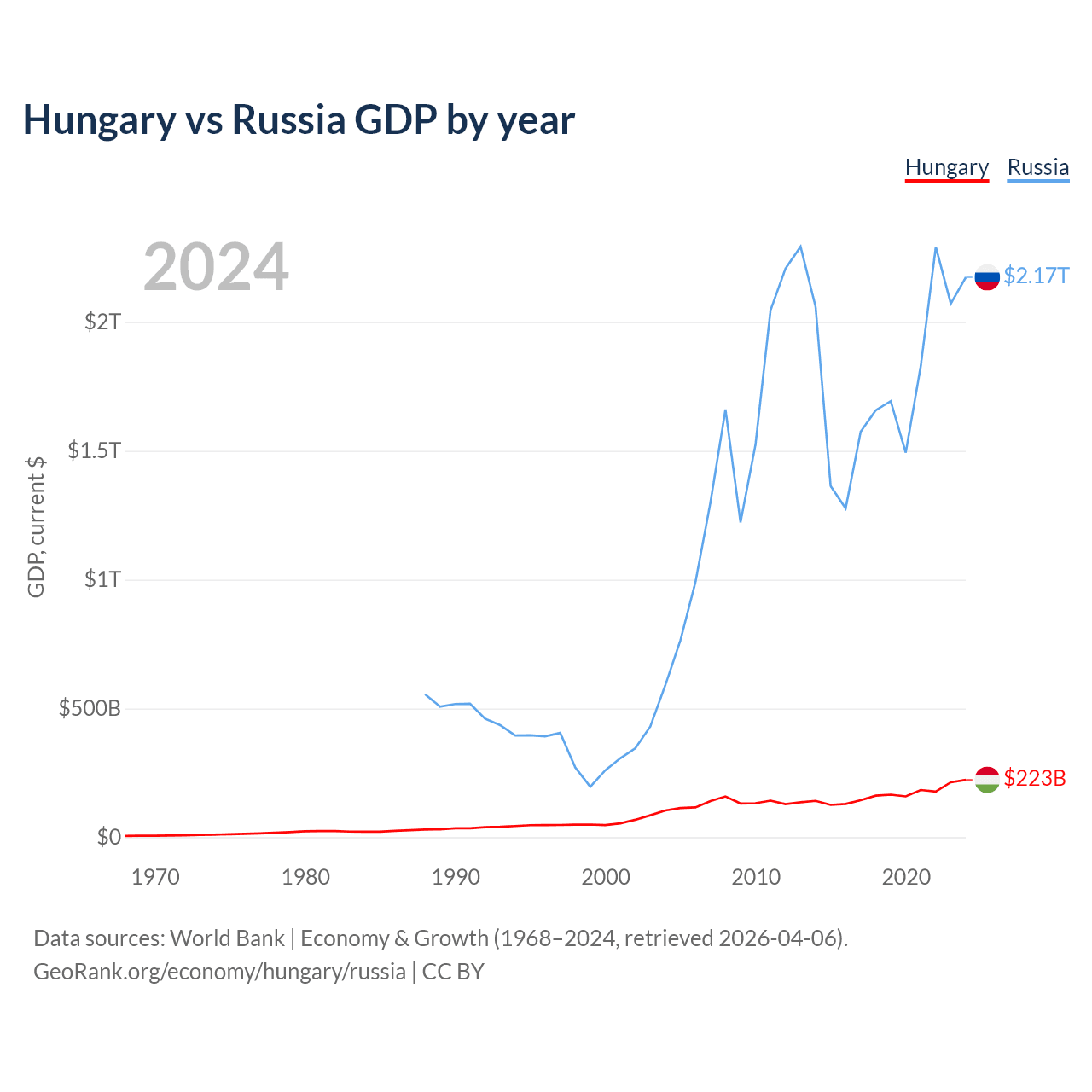 Hungary vs Russia GDP by year