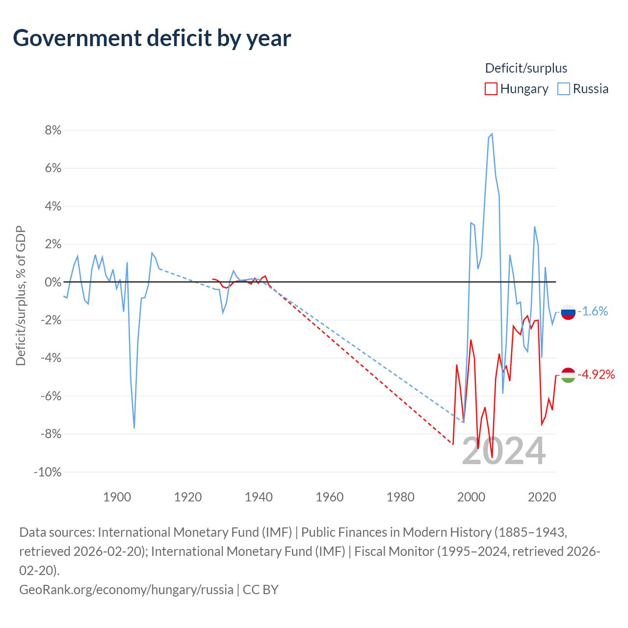 - International Monetary Fund (IMF) | Public Finances in Modern History (1885–1996, retrieved 2026-02-20)