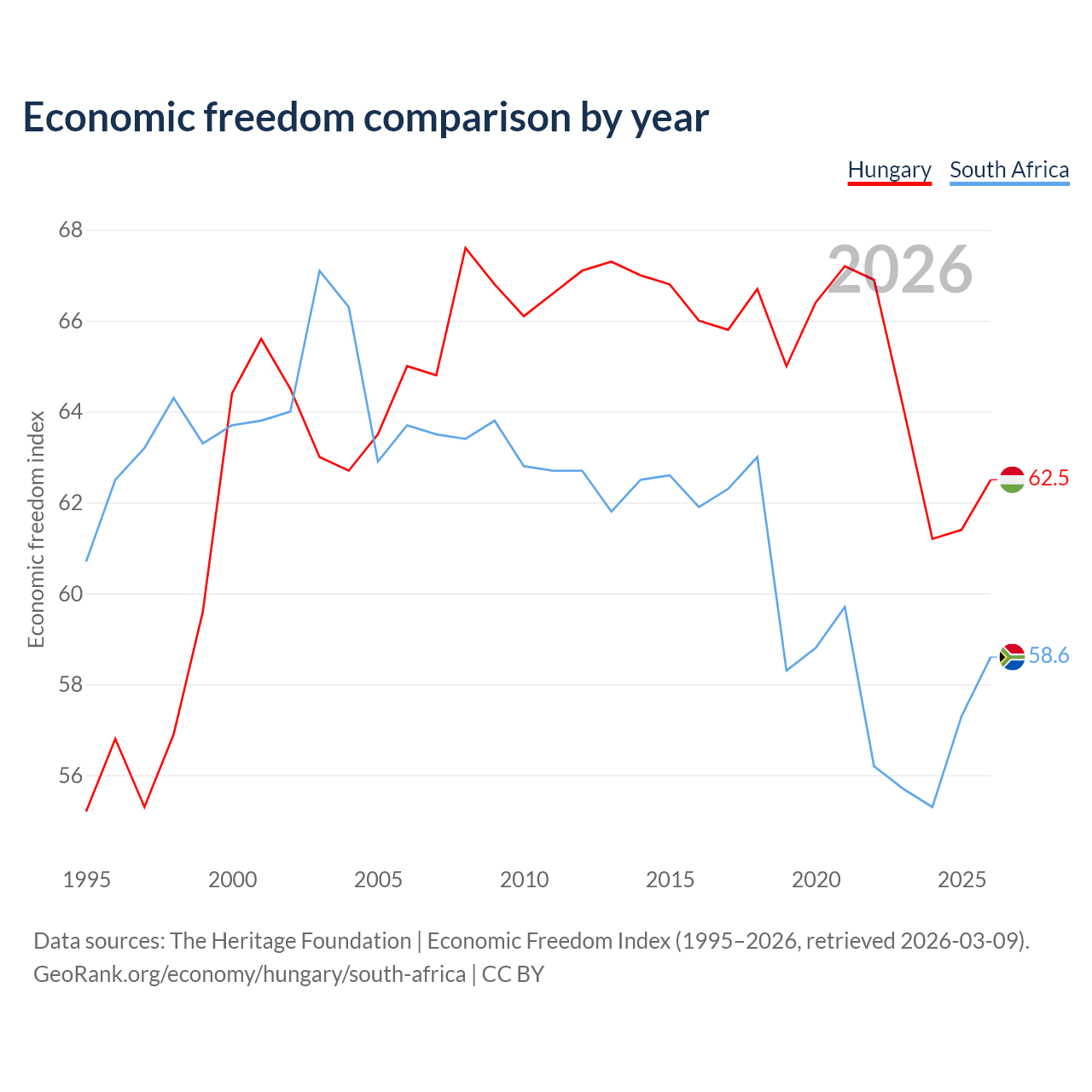 Data sources: The Heritage Foundation | Economic Freedom Index (1995–2026, retrieved 2026-03-09).