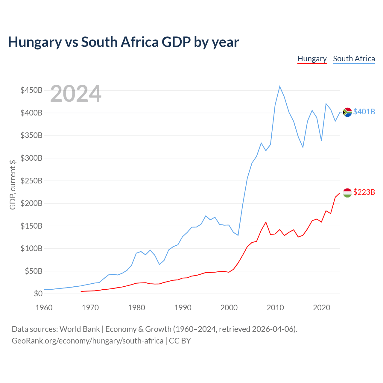 Hungary vs South Africa GDP by year