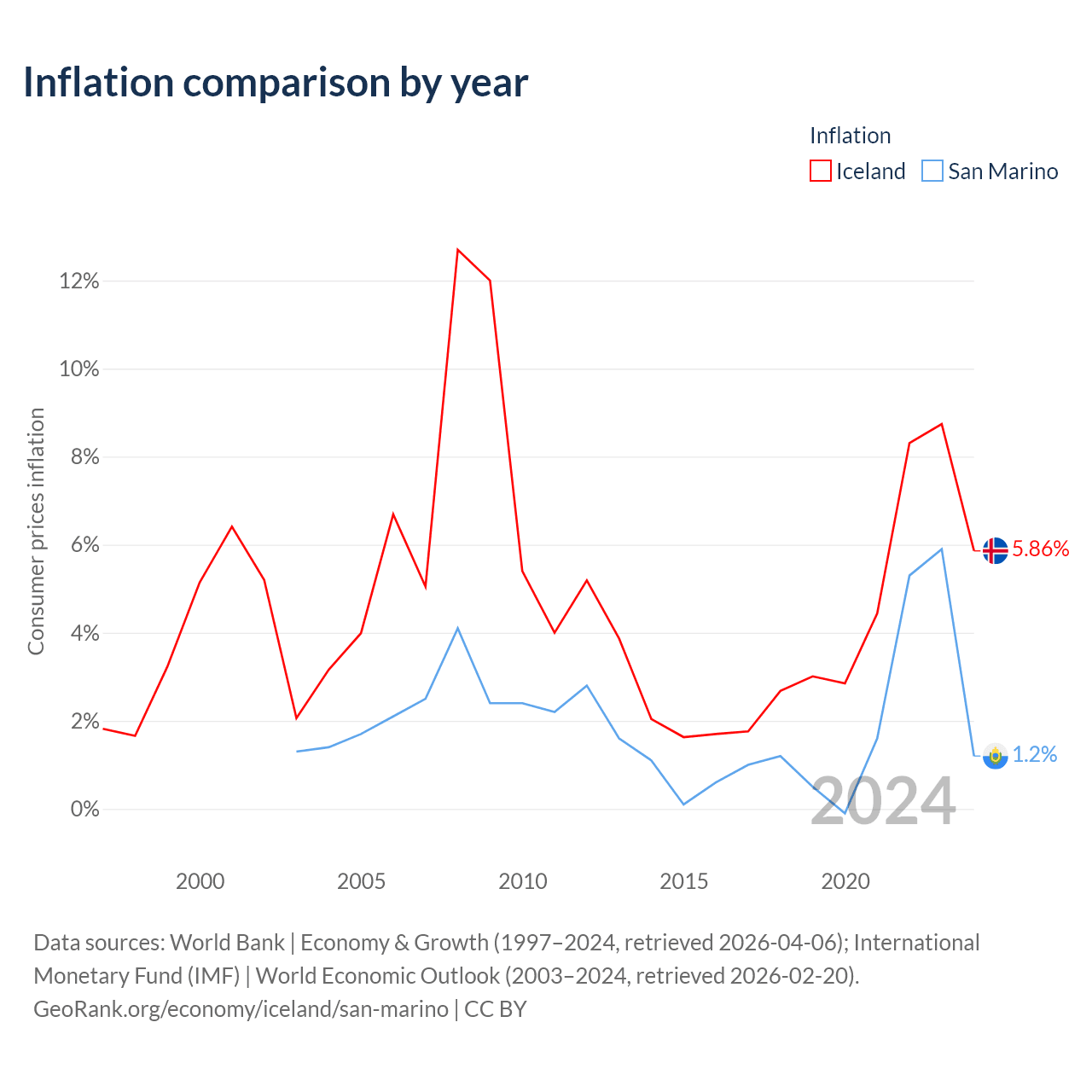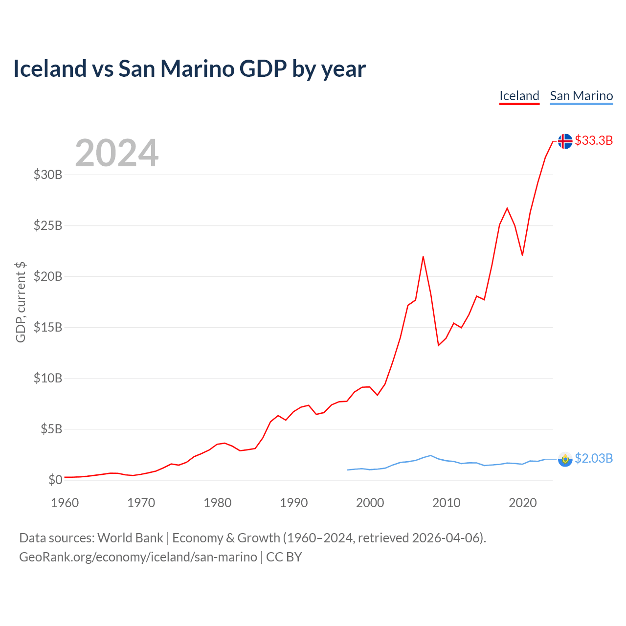Iceland vs San Marino GDP by year