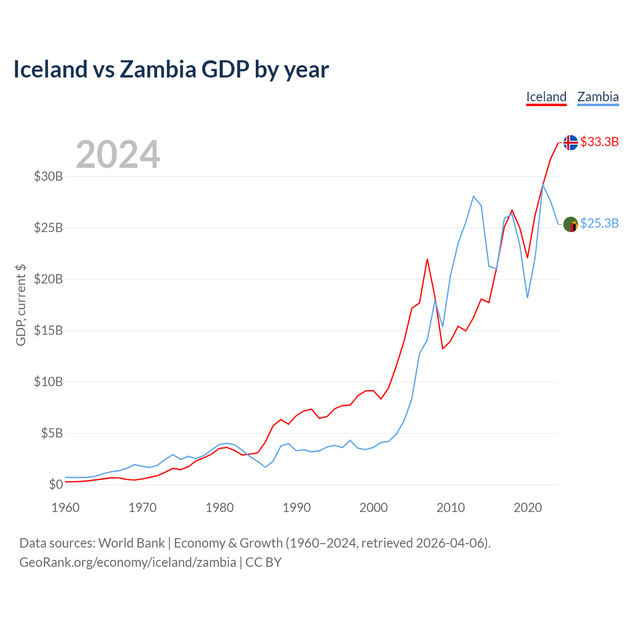 Iceland vs Zambia GDP by year