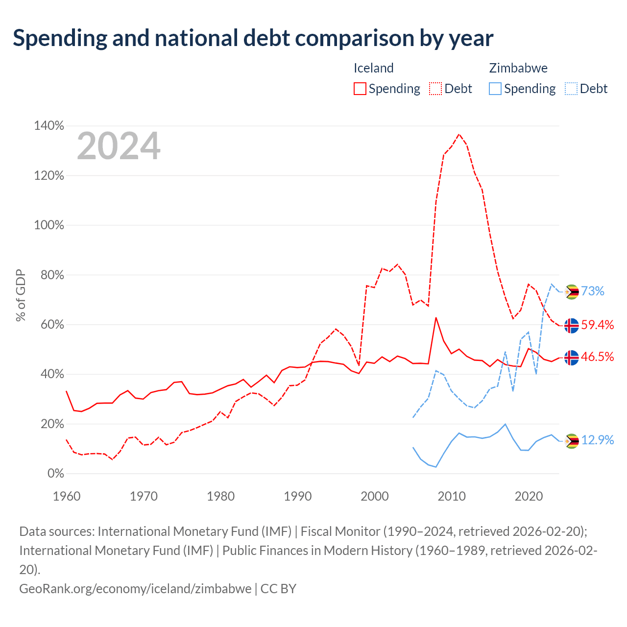 Iceland has $19.8B in government debt (59.4% of GDP), compared to $30.3B (73% of GDP) in Zimbabwe.