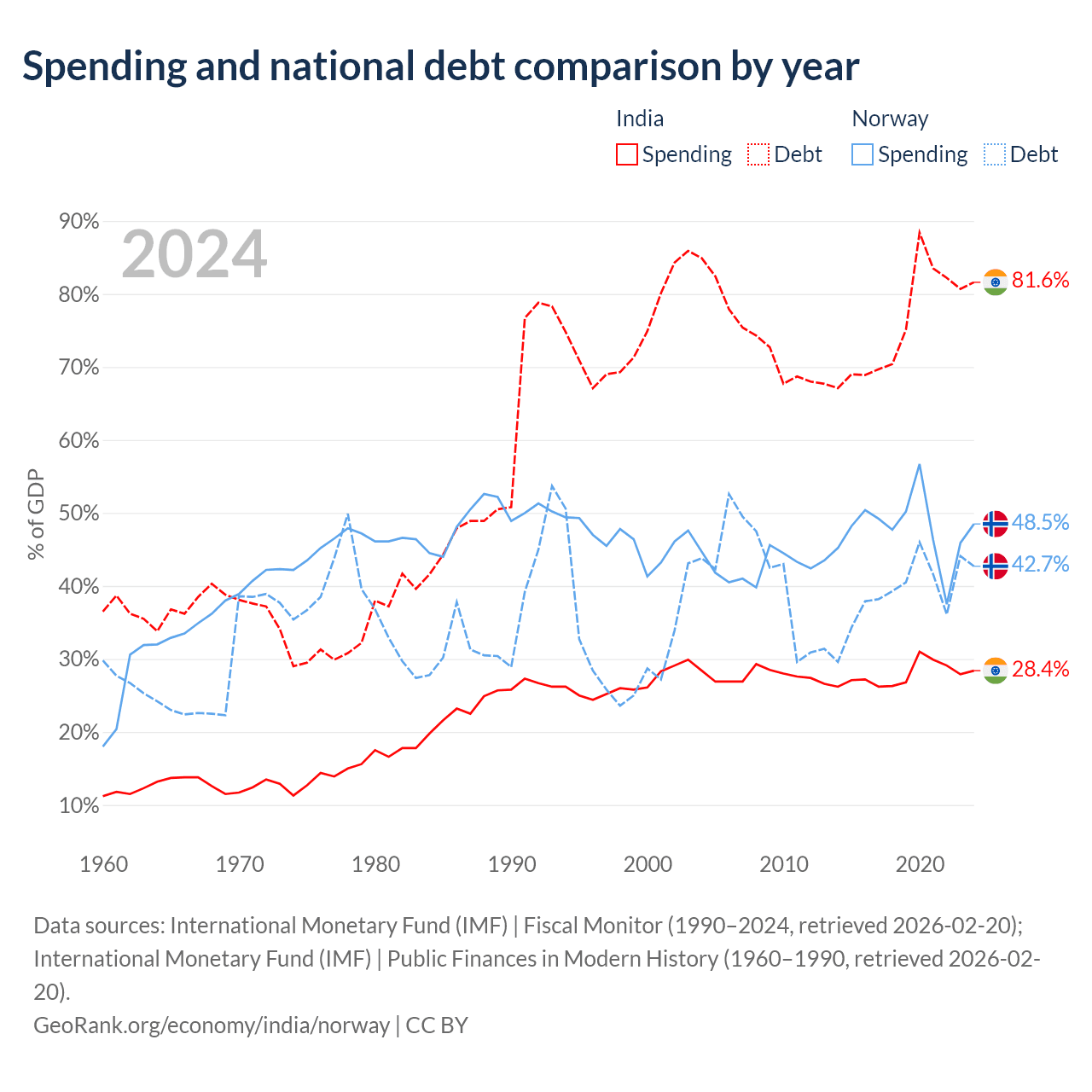 - International Monetary Fund (IMF) | Fiscal Monitor (1990–2024, retrieved 2026-02-20)