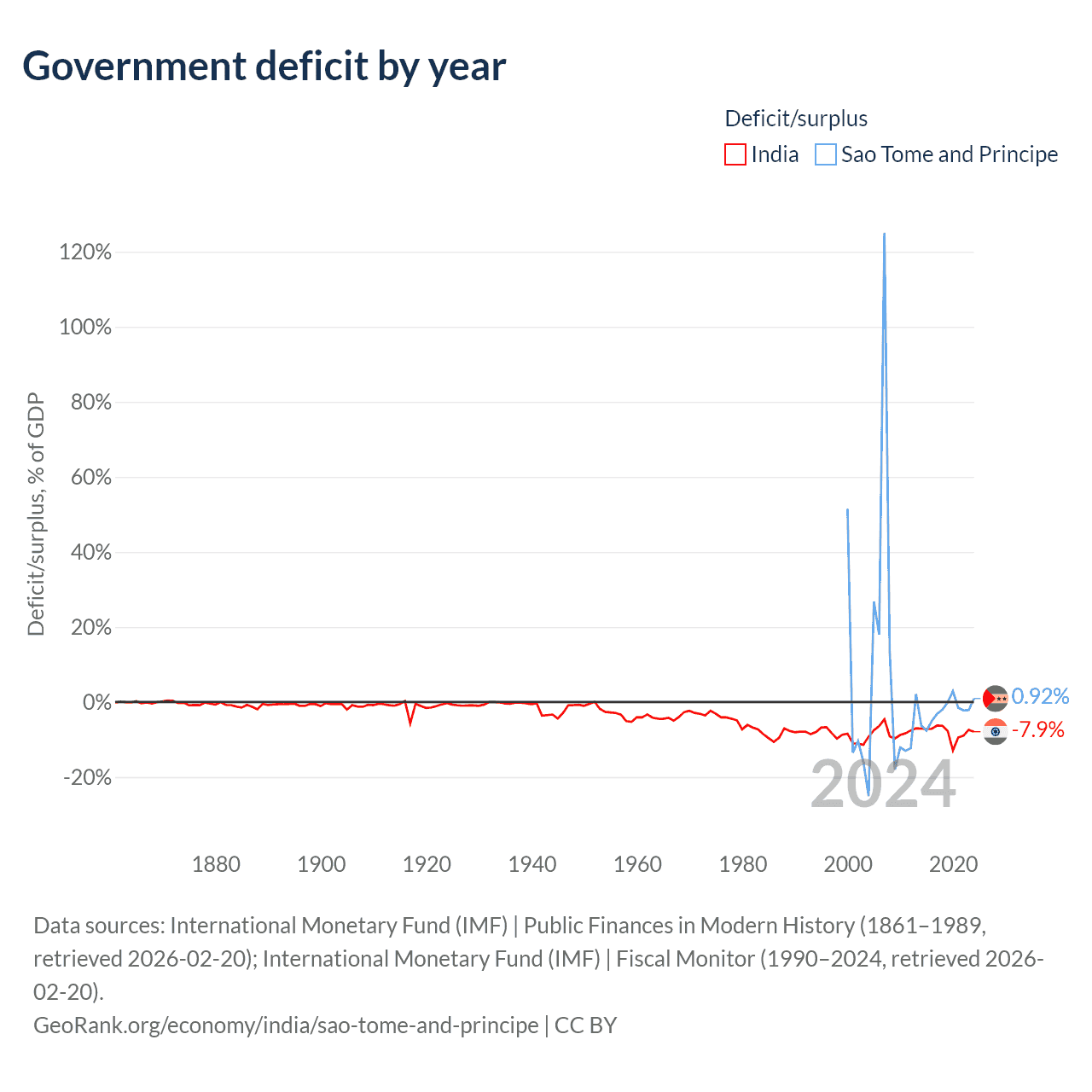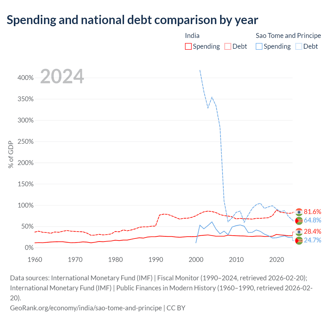 India has $3.18T in government debt (79.6% of GDP), compared to $357M (33.3% of GDP) in Sao Tome and Principe.