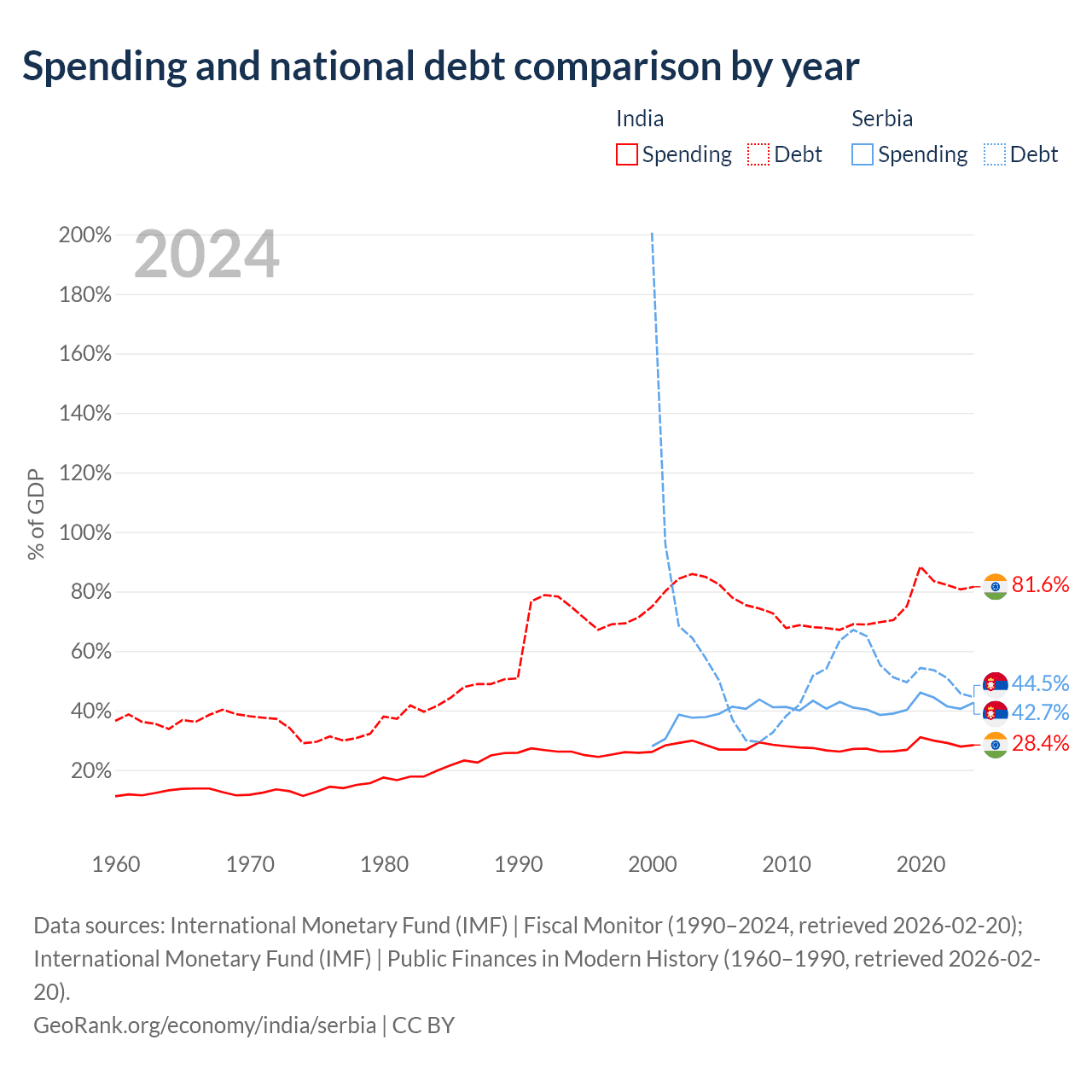 India has $3.19T in government debt (81.6% of GDP), compared to $40.1B (44.5% of GDP) in Serbia.