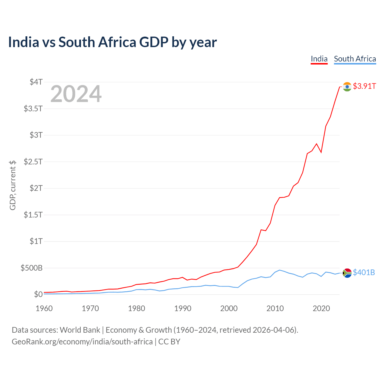 Data sources: World Bank | Economy & Growth (1960–2024, retrieved 2026-04-06).
