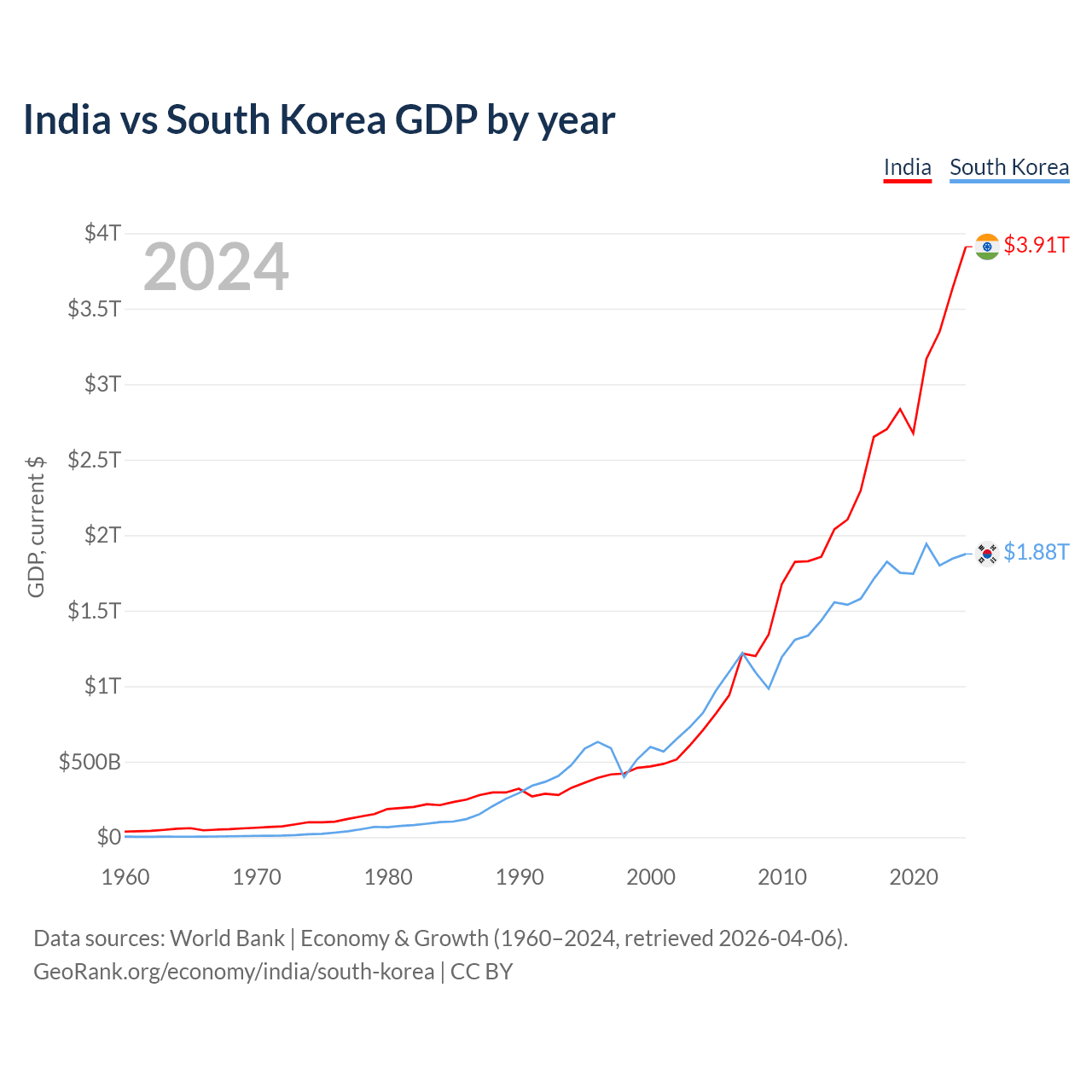India vs South Korea GDP by year